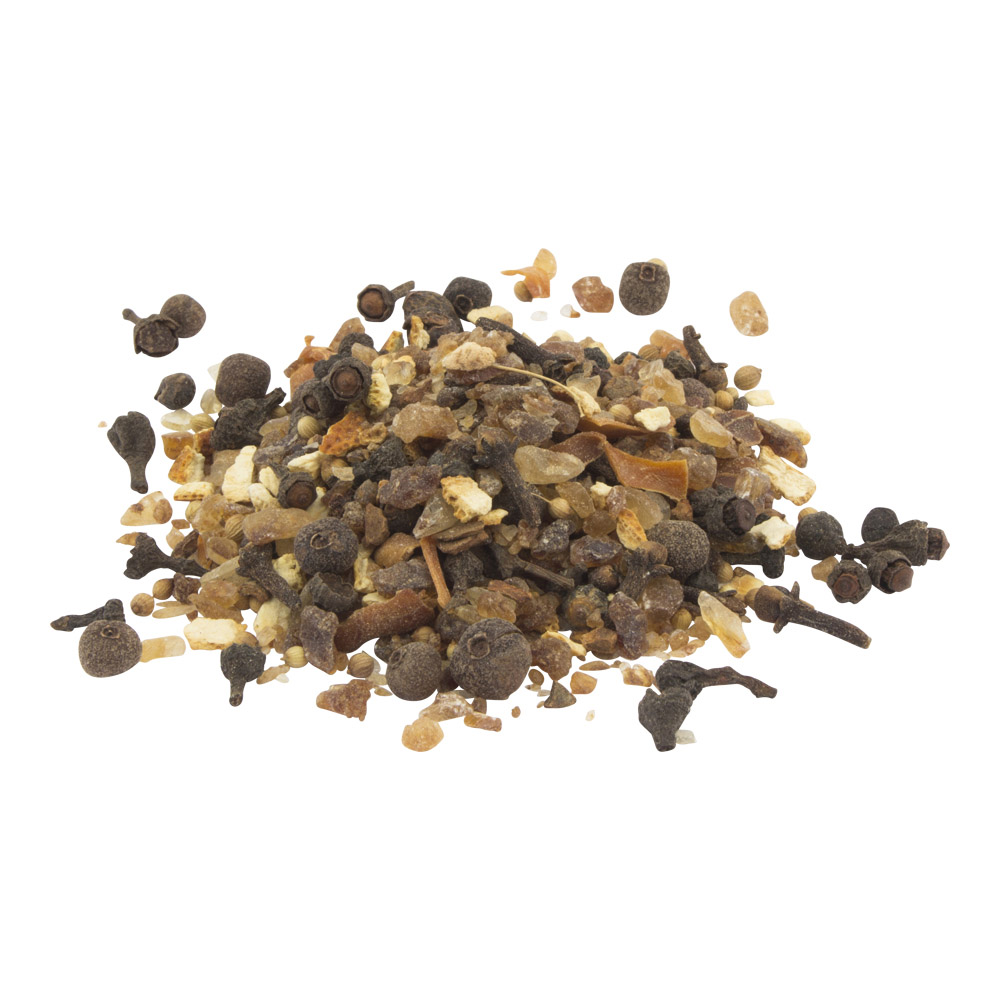 Zutaten: Brauner Kandis 76%, Zimtblüte, Cassia Zimt, Orangenschale, Kardamom, Piment, Macis, Nelken