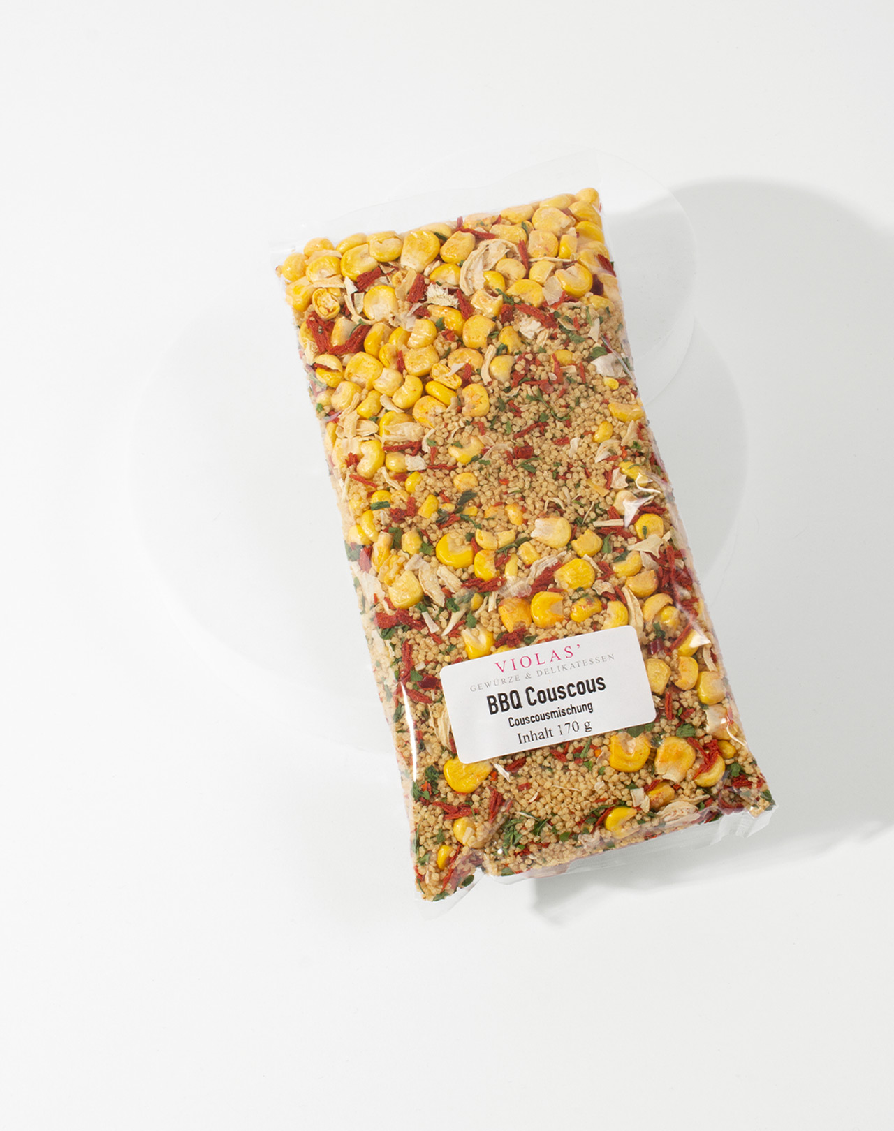 Diese Mischung ergibt ein köstliches Couscous-Gericht mit Raucharomen von geräucherter Paprika. Kontrastiert von süßem Mais und intensiven Tomaten, ergänzt von Zwiebeln, leichter Schärfe von Chili und Knoblauch. Ein Couscous ist sehr schnell zubereitet. Die Menge ergibt ein Hauptgericht für zwei Personen oder ist als Beilage für vier Personen ausreichend. Wenn man noch Feta, Salatgurke oder frische Tomaten hinzufügt, wird aus dieser Mischung auch einen herrlichen Salat. Vielleicht für die nächste Grillparty?