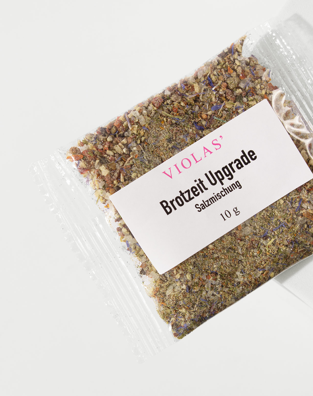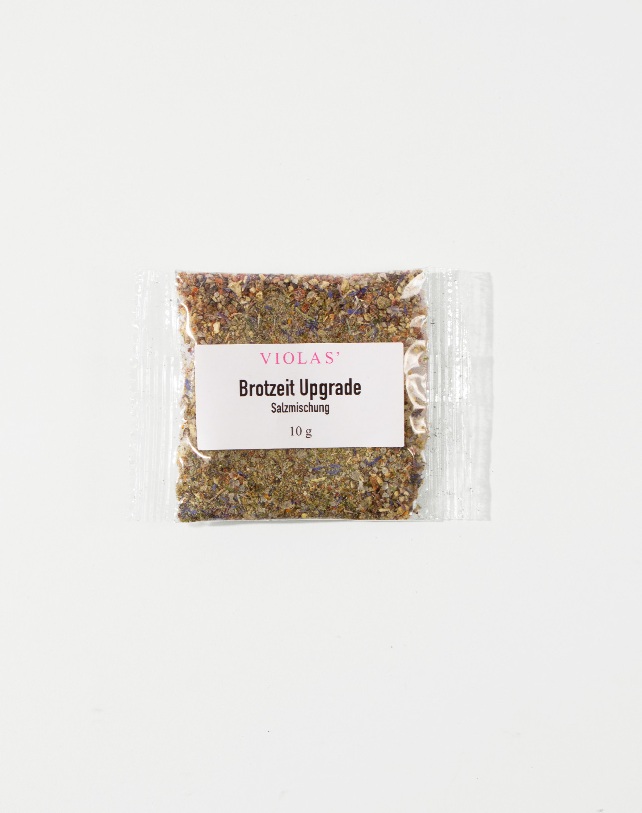 Salz, Pfefferschwarz, Zwiebeln, Tomaten, Paprika, Schnittlauch, Petersilie, blaue Kornblumen. Perfekt zum Probieren oder für den Adventskalender: Unser Gewürz »Brotzeit Upgrade« im Miniatur-Tütchen.
