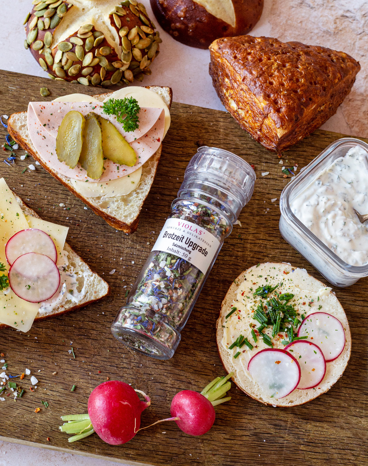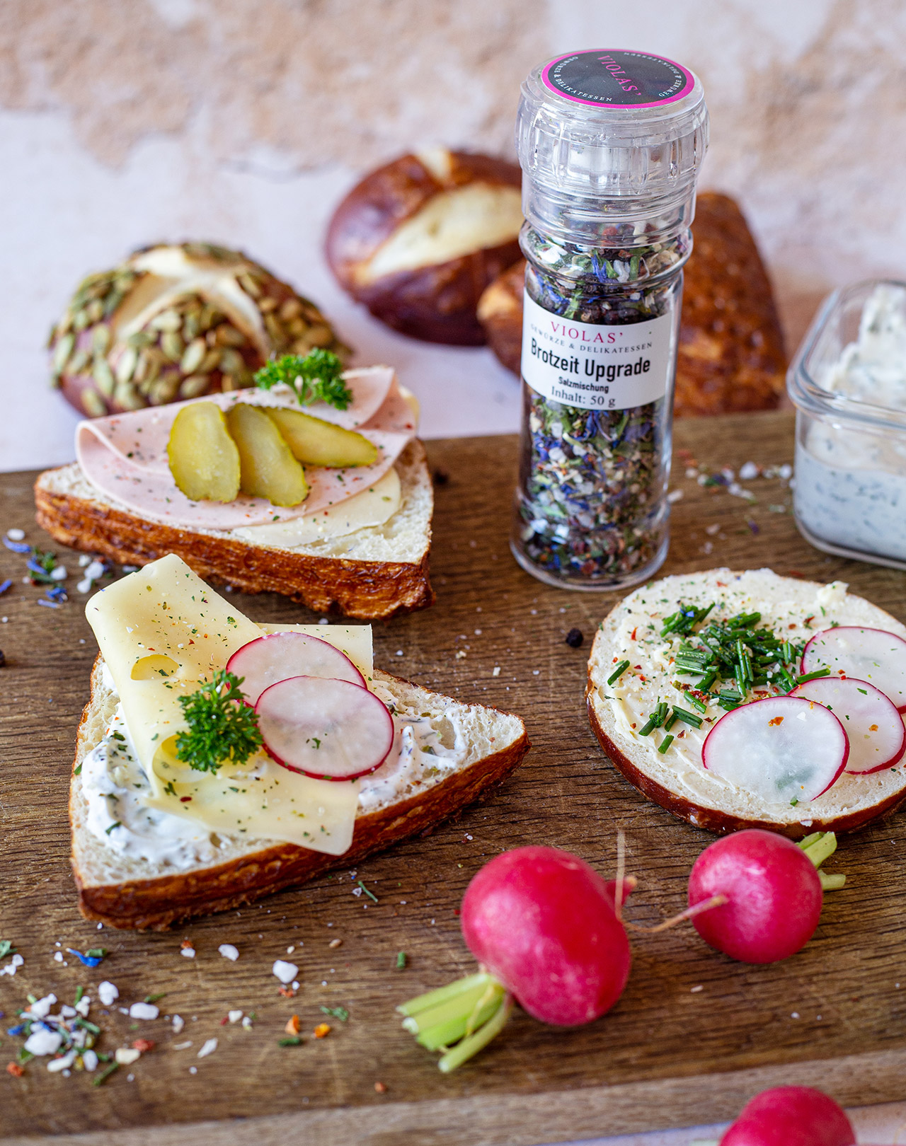 Dieses Salz mit schwarzem Pfeffer, Gemüseflocken und Kräutern adelt jedes Brot, Brötchen oder Sandwich beim Abendbrot oder Picknick. Die hübsche Gewürzmühle passt in jeden Picknickkorb, denn: frisch gemahlen ist’s besonders lecker.