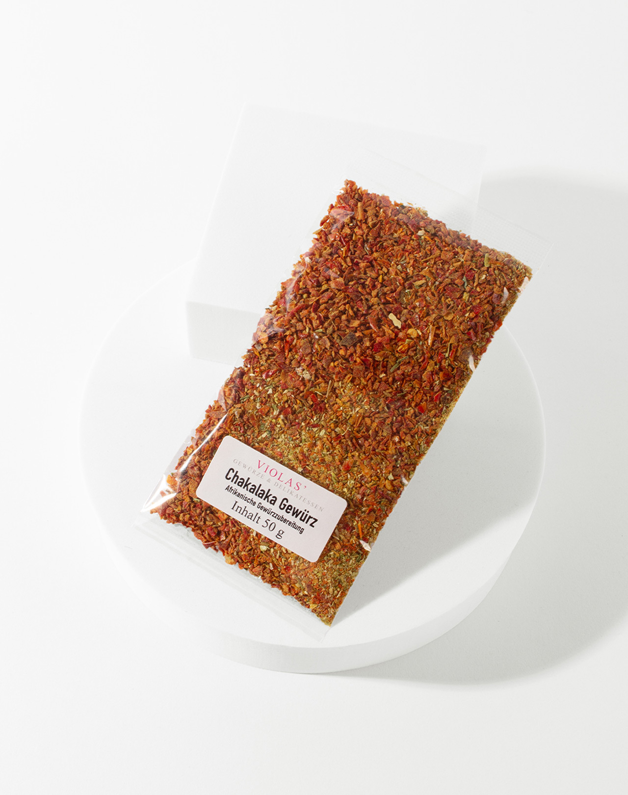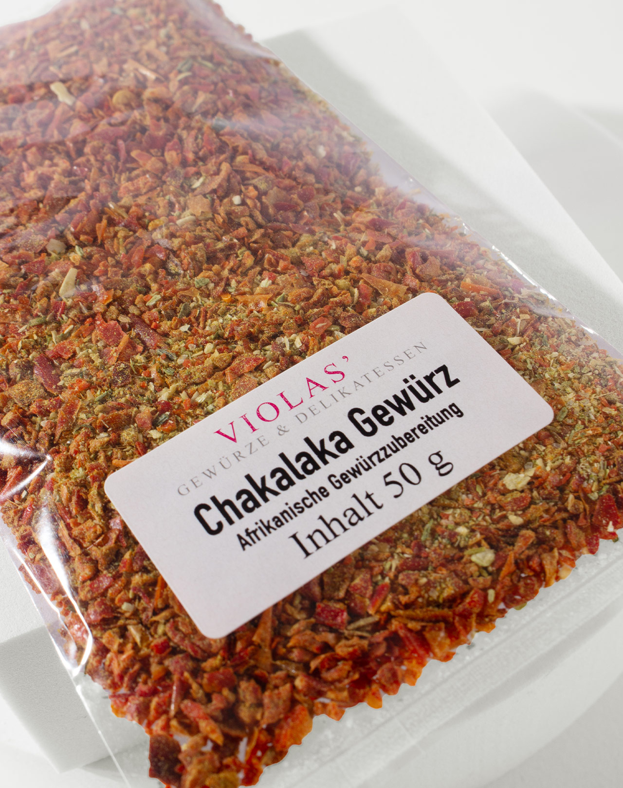 Chakalaka ist eine vielseitige afrikanische Gewürzmischung, die die Geschmacksnerven tanzen lässt. Paprika, Karotten Zwiebeln, Curry, Tomaten und Knoblauch passen hervorragend in Gemüseeintöpfe, würzen Hühnerfleisch und Fisch für den Grill oder zaubern mit Crème fraîche einen leckeren Dip. Was will man mehr?