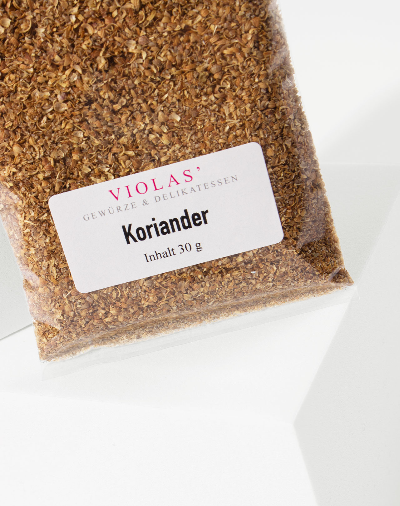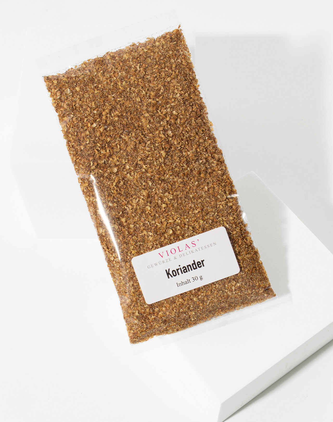 Koriander besitzt einen warmen, nussig-würzigen Geschmack. Ganz anders als frischer Koriander. Es wird in vielen asiatischen und orientalischen Gerichten und herzhaften Eintöpfen verwendet. Außerdem lassen sich Saucen und Chutneys mit dem würzigen Aroma hervorragend abschmecken.