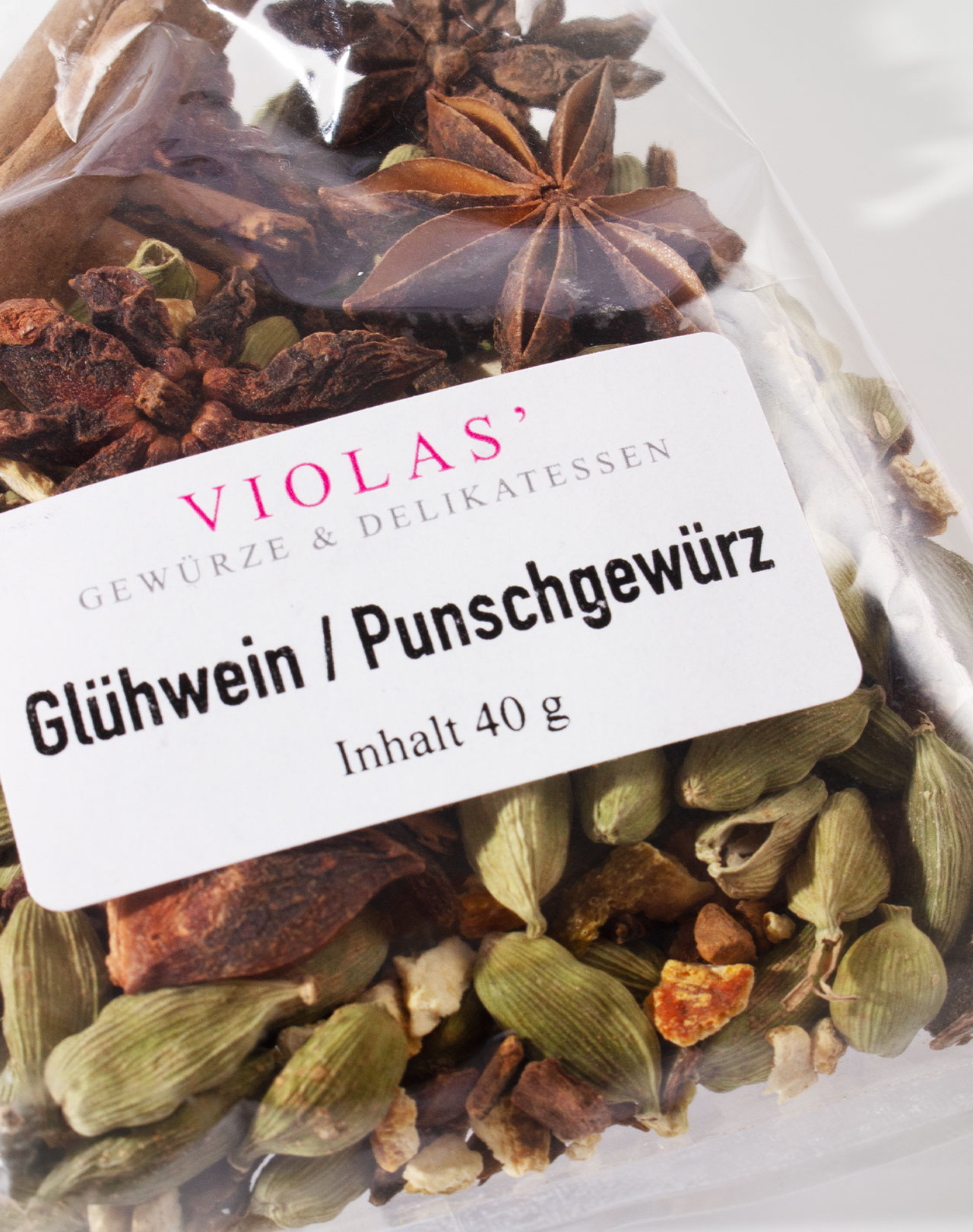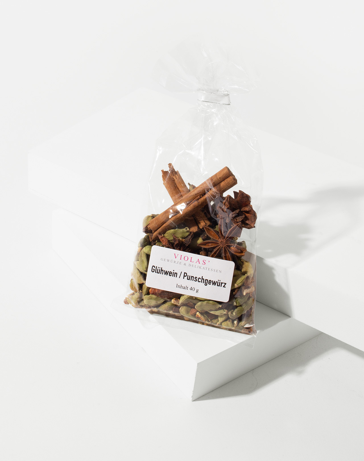 Dieser fein abgerundete Gewürzmix lässt sich hervorragend mit Rotwein oder Weisswein oder auch mit Holunderblütensaft erhitzen. Mit etwas Honig, Zucker oder Agavendicksaft süßen und nach Geschmack mit etwas Orangensaft ergänzen – fertig ist ein köstlich wärmendes Wintergetränk.