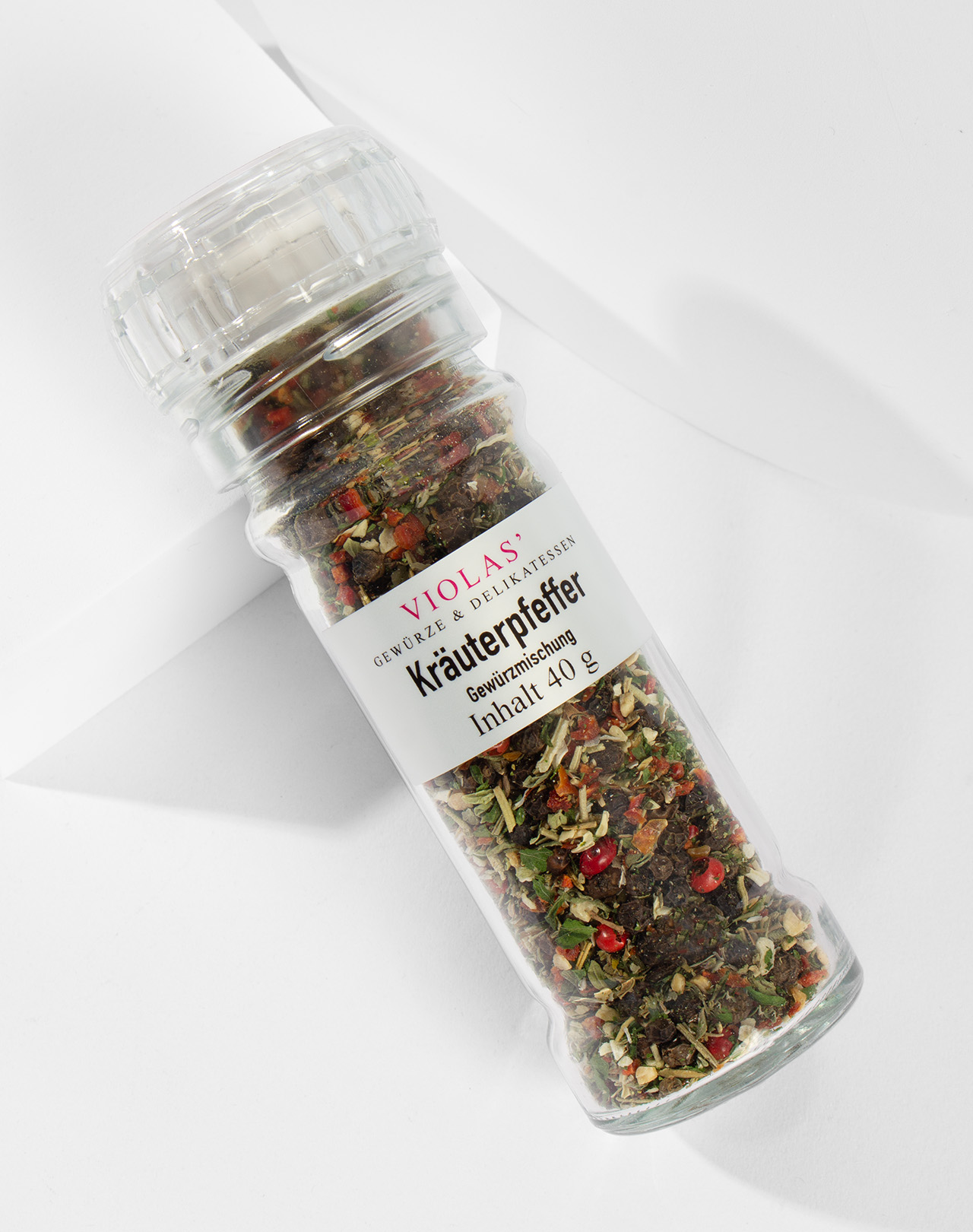 Eine der aromatischsten Gewürzmischungen auf Pfefferbasis in unserem VIOLAS’ Sortiment: Würzen Sie damit kalte und warme Gerichte, Fleisch und Gemüse oder verwenden Sie sie für Kräutersaucen und -butter oder geschmackvolle Marinaden mit einer pfeffrigen Note.