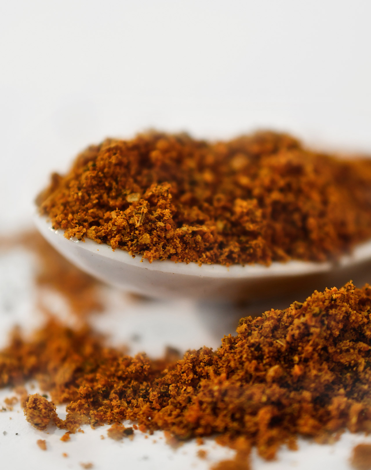 Pfeffer, Kurkuma, Kokosraspeln, Koriandersaat, Cumin, Kardamomsaat, Paprika delikatess, Meersalz 3,4%, Ingwer, Zimt, Cayennepfeffer, Knoblauch, Rohrzucker 1,7%