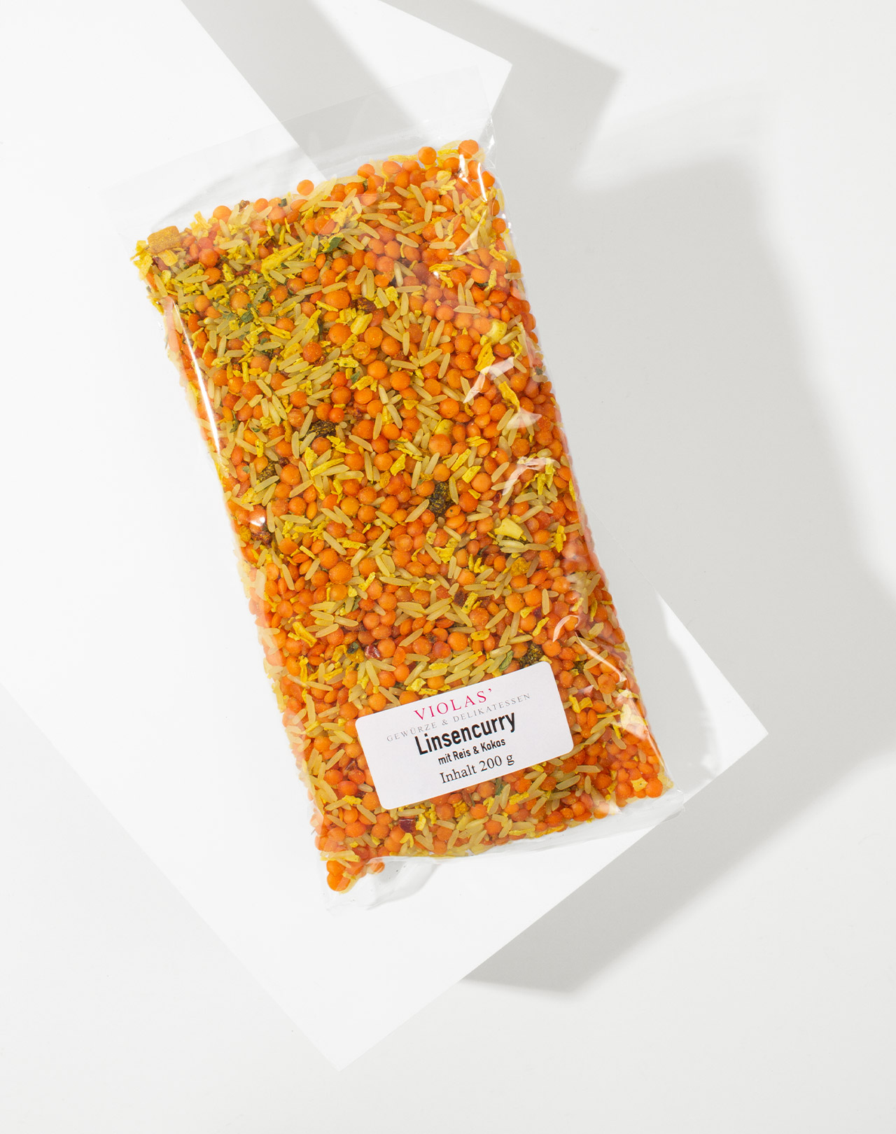 Curry in Zwiebeln & Öl glasig dünsten und dann mit doppelter Menge Gemüsebrühe aufgießen. Jetzt nur noch für etwa 18 bis 20 Minuten leicht köcheln lassen und genießen!