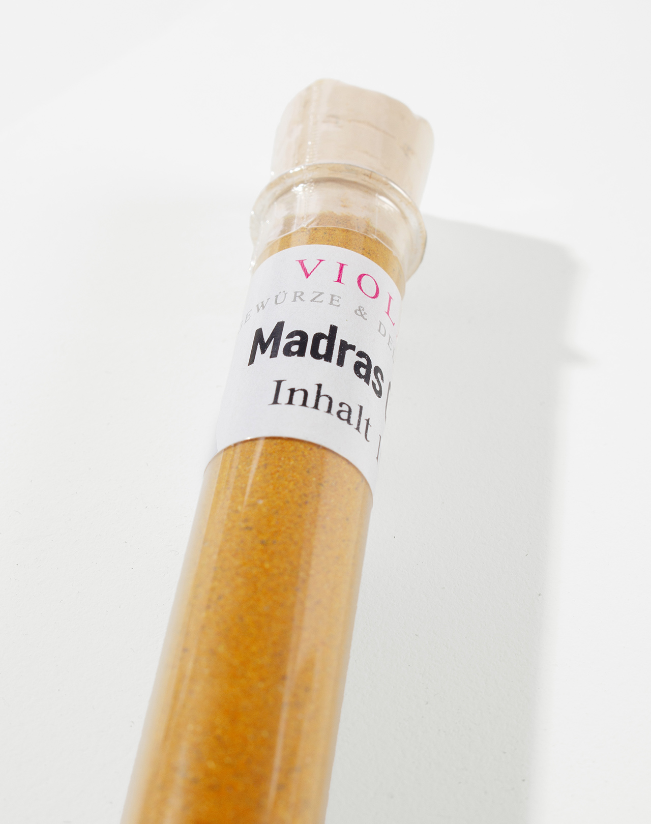 Madras Curry entstammt der südindischen Küche. Unsere Mischung lässt sich als vergleichsweise mild beschreiben und passt daher auch hervorragend zu Fisch und Krustentieren. Probieren Sie es auch zu feinen Salaten mit Hühnchen und exotischen Früchten, Chutneys oder gegrillter Ananas.