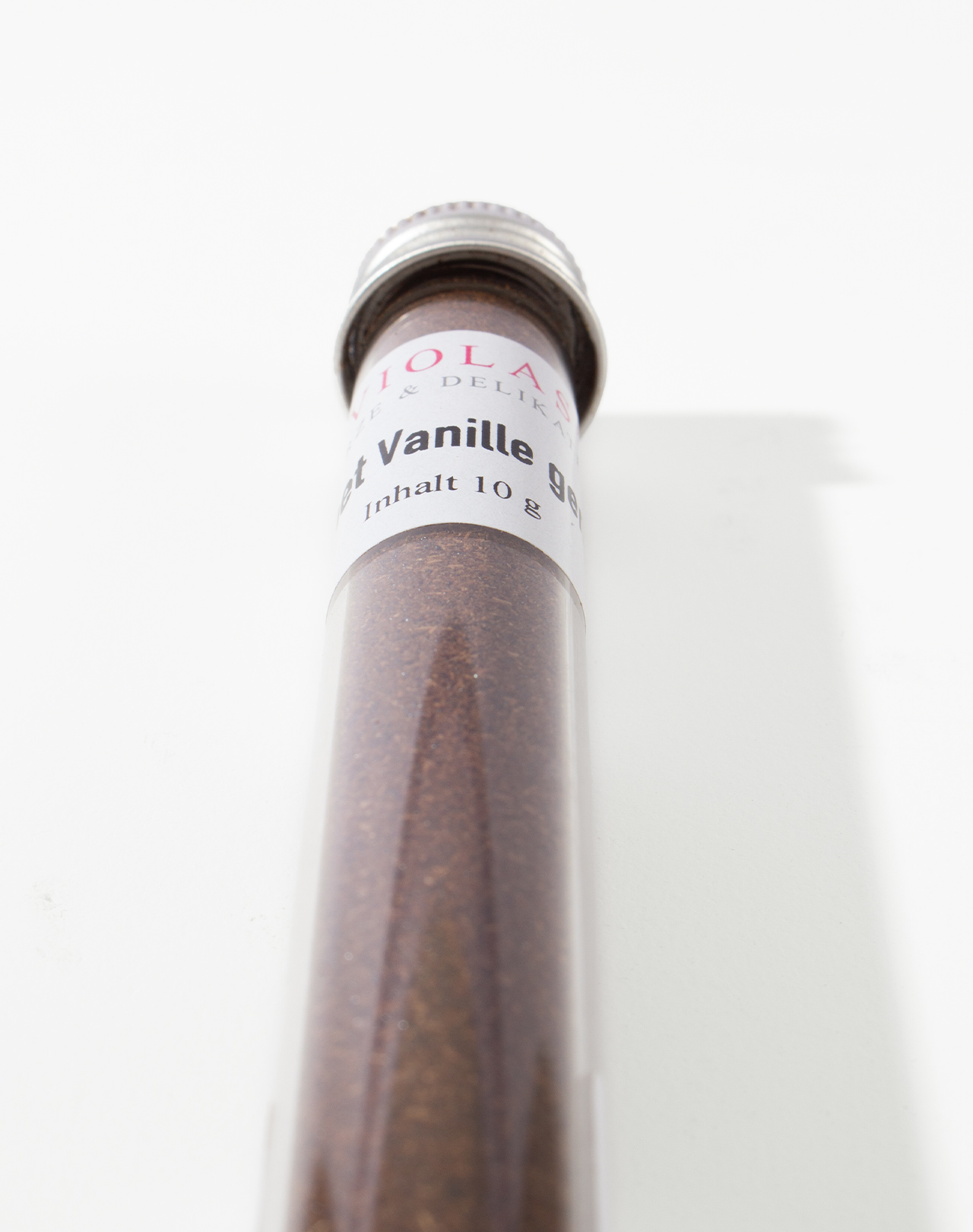 Zur Herstellung dieses Vanillepulvers wird die ganze Schote gemahlen und abgefüllt. Angebaut wird diese Vanille in Papua-Neuguinea und gehört neben Kaffe zu einem der ertragreichsten Exportgüter. Zudem reift die Vanille unter den dortigen klimatischen Bedingungen ideal und wird sehr aromatisch!