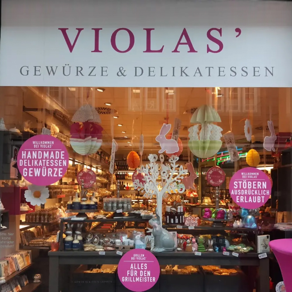 »So ein Geschäft hat uns in Münster lange gefehlt«, das sind bis heute die Reaktionen der Kunden von Anja Burkhardt. Das VIOLAS’ Konzept mit Gewürzen aus aller Welt, Schokoladen, Ölen und Essigen für die eigene Küche oder zum Verschenken hat die Münsteraner von Anfang an begeistert. Wir beraten Sie bei der Suche nach außergewöhnlichen Zutaten oder individuellen Geschenken.