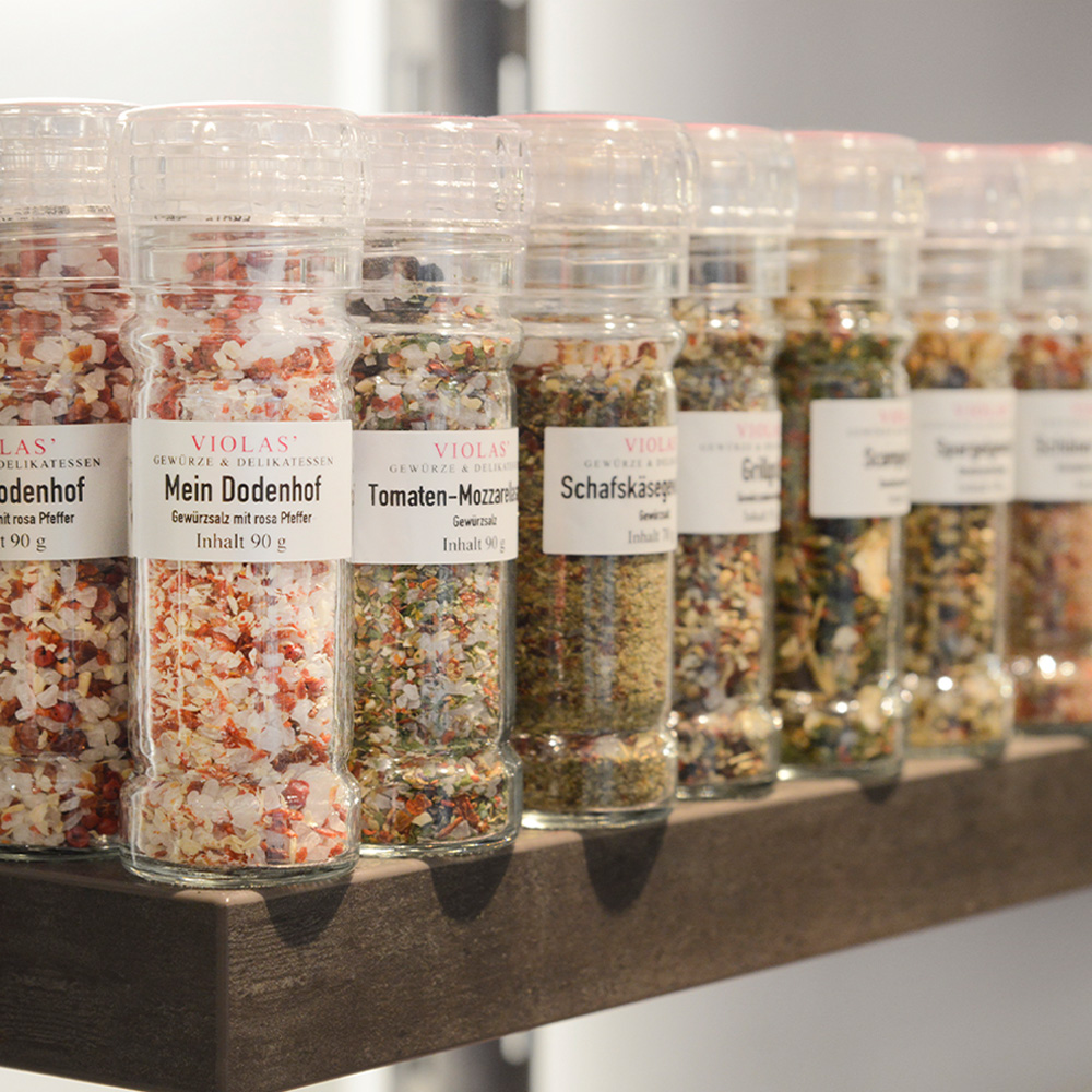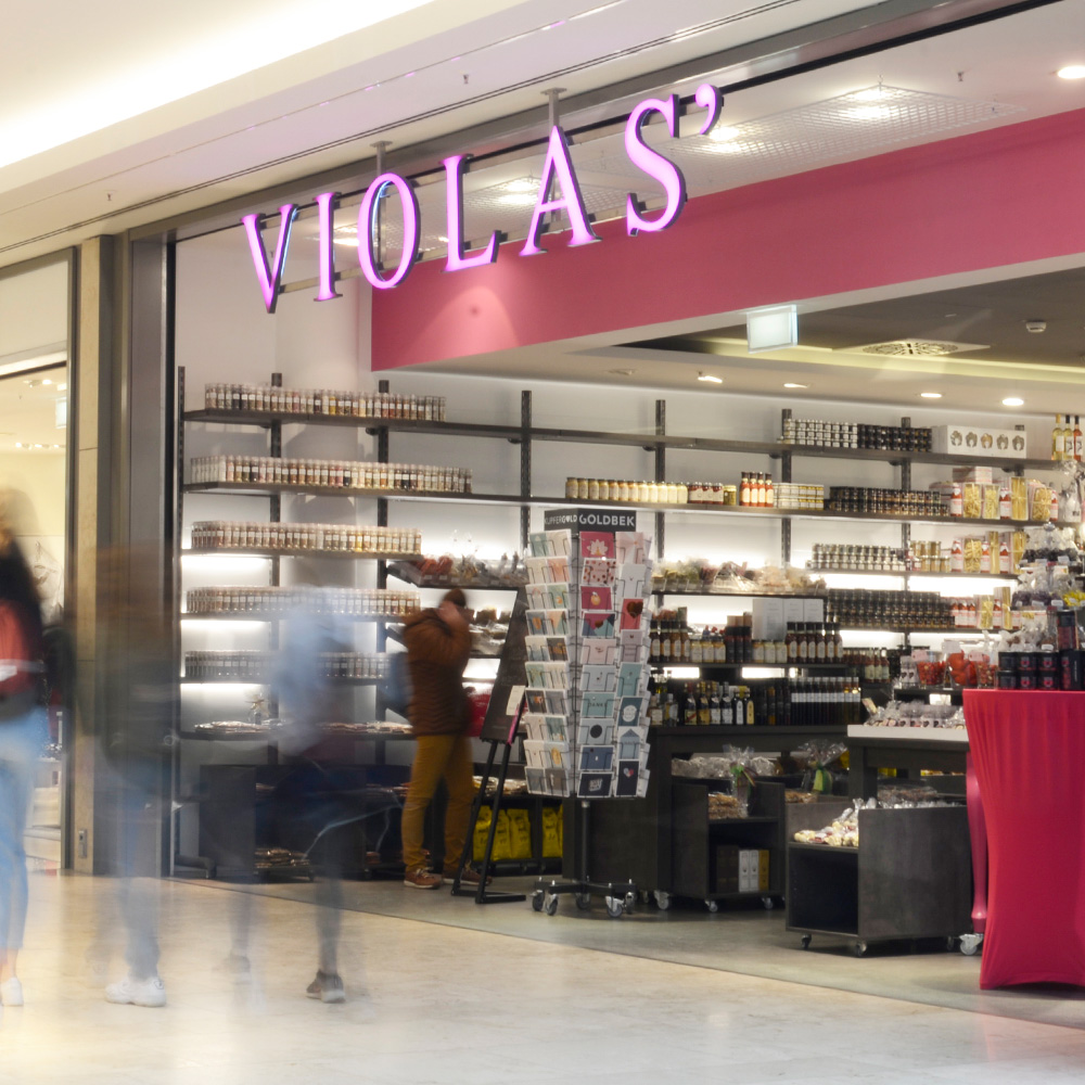 In der Nähe von Bremen liegt das Shoppingcenter Dodenhof und hier darf natürlich auch ein kleines, feines VIOLAS‘ Geschäft nicht fehlen. Sabine Fischer und ihr Team freuen sich, Sie in allen Belangen des guten Geschmacks und des Genusses beraten zu dürfen. Tauchen Sie ein in eine bunte, fröhliche und vor allen Dingen kulinarische Welt, die Sie mit Sicherheit für einen Augenblick den Alltag vergessen lässt. Neben wunderbaren Gewürzen, Ölen, Essigen sowie Reis- und Risottomischungen hält Frau Fischer auch die ein oder andere gustatorische Rarität für Sie bereit.