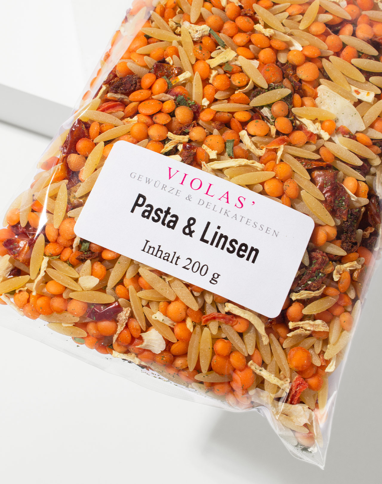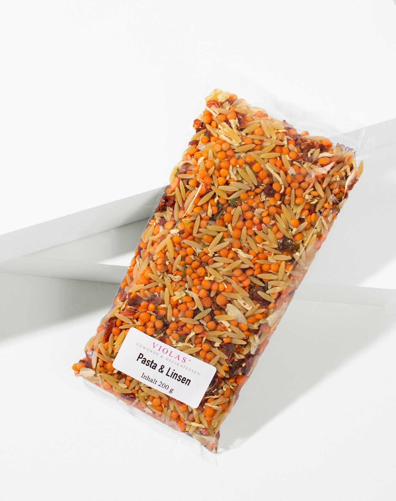 Leckere VIOLAS’ Reiskornnudel kombiniert mit roten Linsen – ausgefallener Mix und richtig lecker. Das Gericht ist schnell zubereitet und hat eine ausgewogene Gemüsenote.