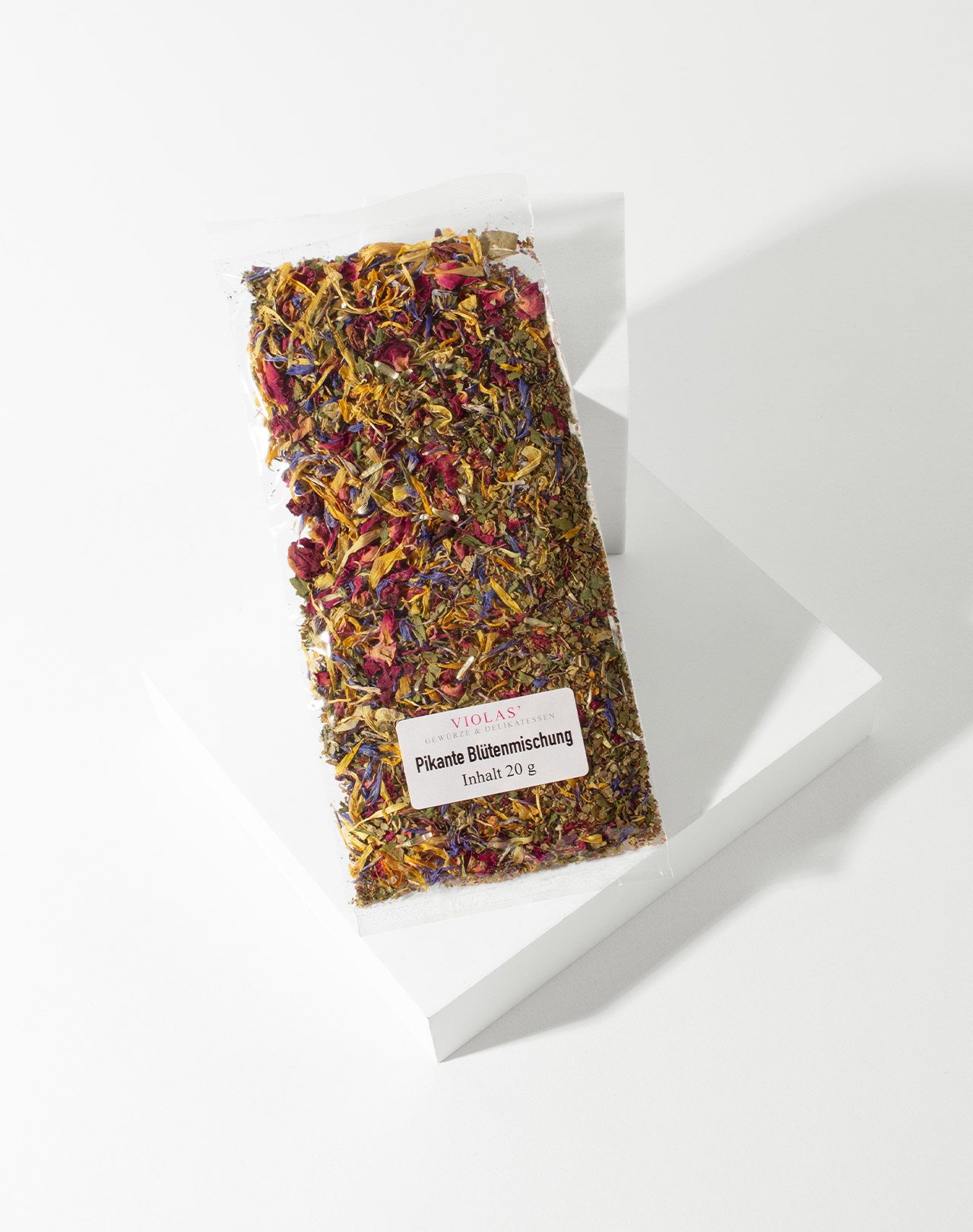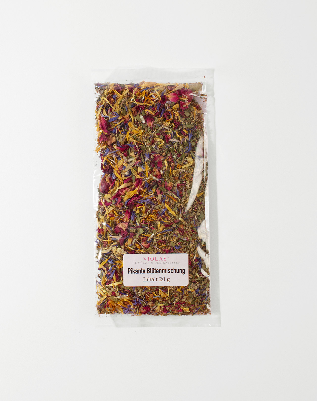 Diese besondere Blütenmischung mit den leicht scharfen Noten von grünem und rosa Pfeffer ist allein schon optisch ein wahrer Augenschmaus. Die bunten Farben von Rosenblättern, Liebstöckel, Ringelblüten und Kornblumen geben Ihren Speisen aber nicht nur eine extravagantes Erscheinungsbild, sondern verleihen ihnen auch eine angenehm süß-pikante Note.