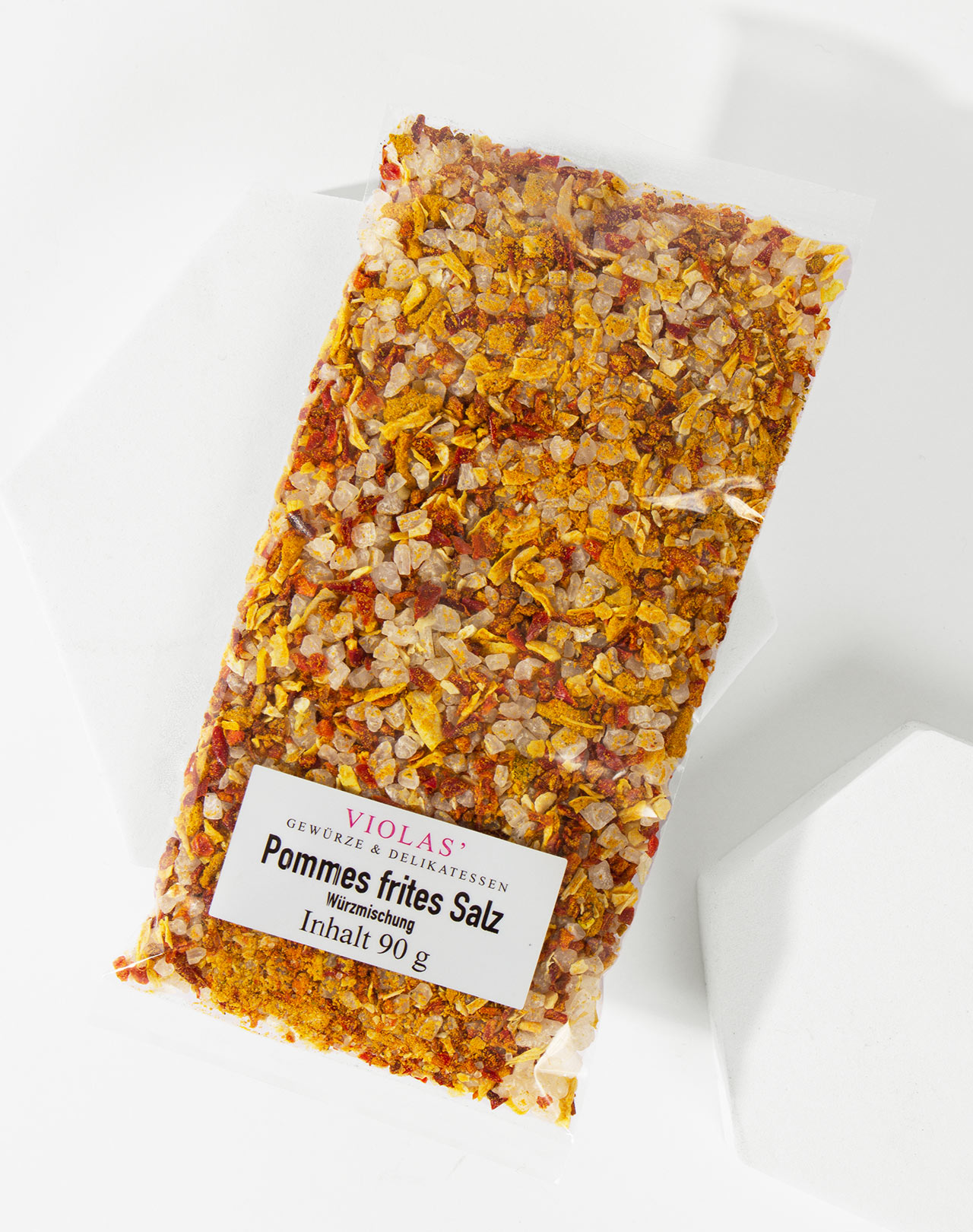 Kartoffeln sind immer beliebt, ob in Spalten, Stäbchen oder in Scheiben, gebraten, gebacken oder frittiert, wichtig ist die herrlich knusprige Oberfläche. Und auf die gehört Salz. Unsere Salzmischung in »Pommes frites Salz« enthält neben Meersalz auch Paprika, Kurkuma, Zwiebeln und einen Hauch Madras Curry und verfeinert die warmen Kartoffelstückchen in kleine Leckerbissen.