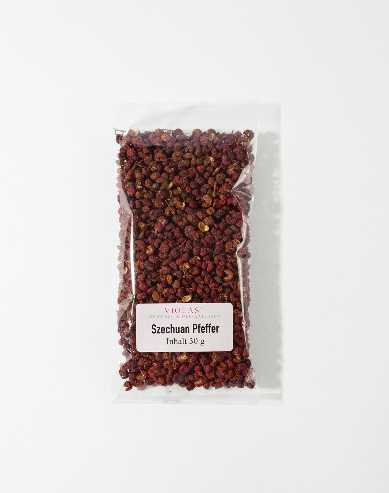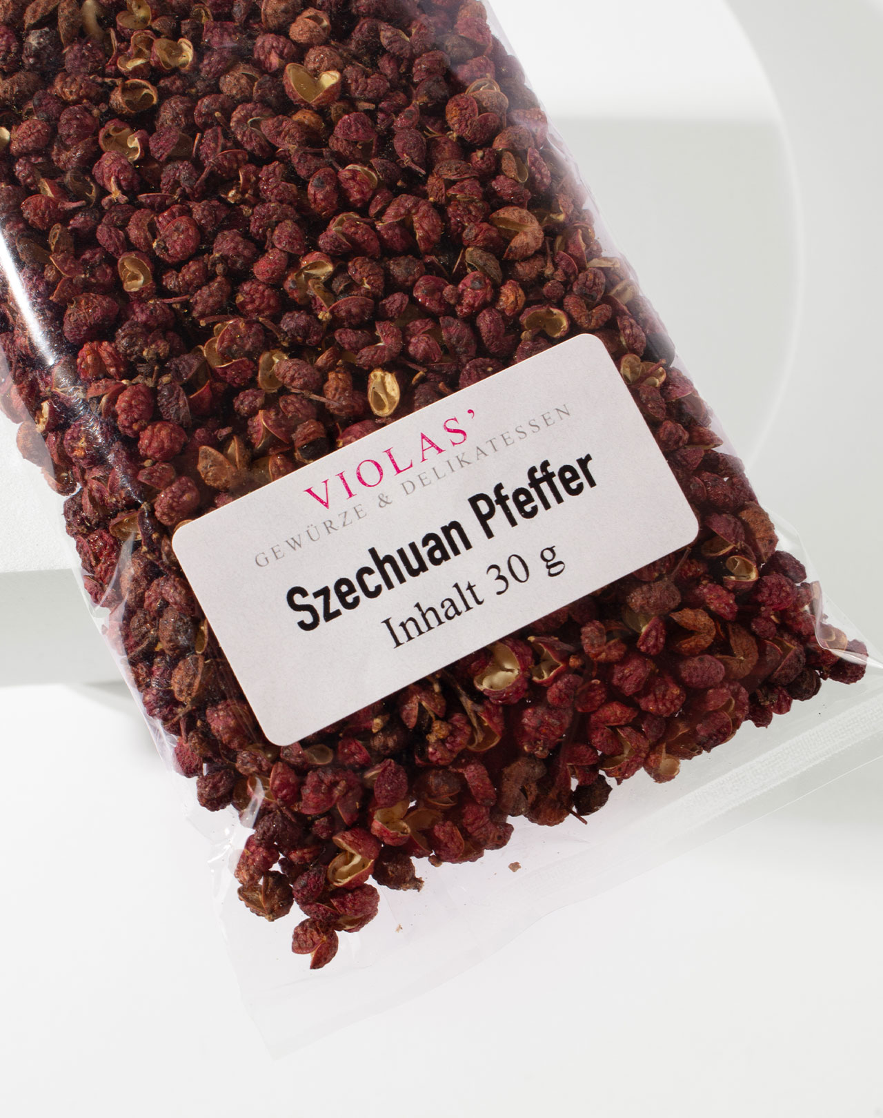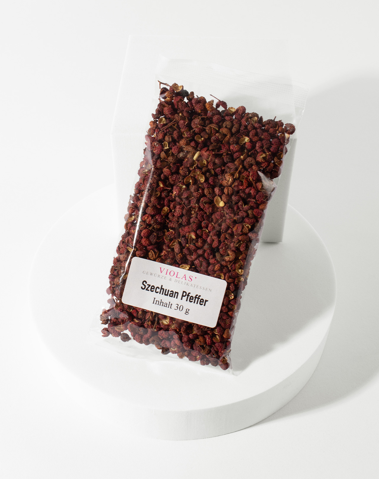 Szechuan Pfeffer ist kein Pfeffer, sondern gehört zu den Zitrusgewächsen. Und das schmeckt man: Neben dem pfeffrigen Aroma gibt es eine bemerkenswert würzige Zitrusnote. Der Szechuan Pfeffer wird besonders gern in der asiatischen Küche für Fisch, Fleisch oder Gemüse eingesetzt.