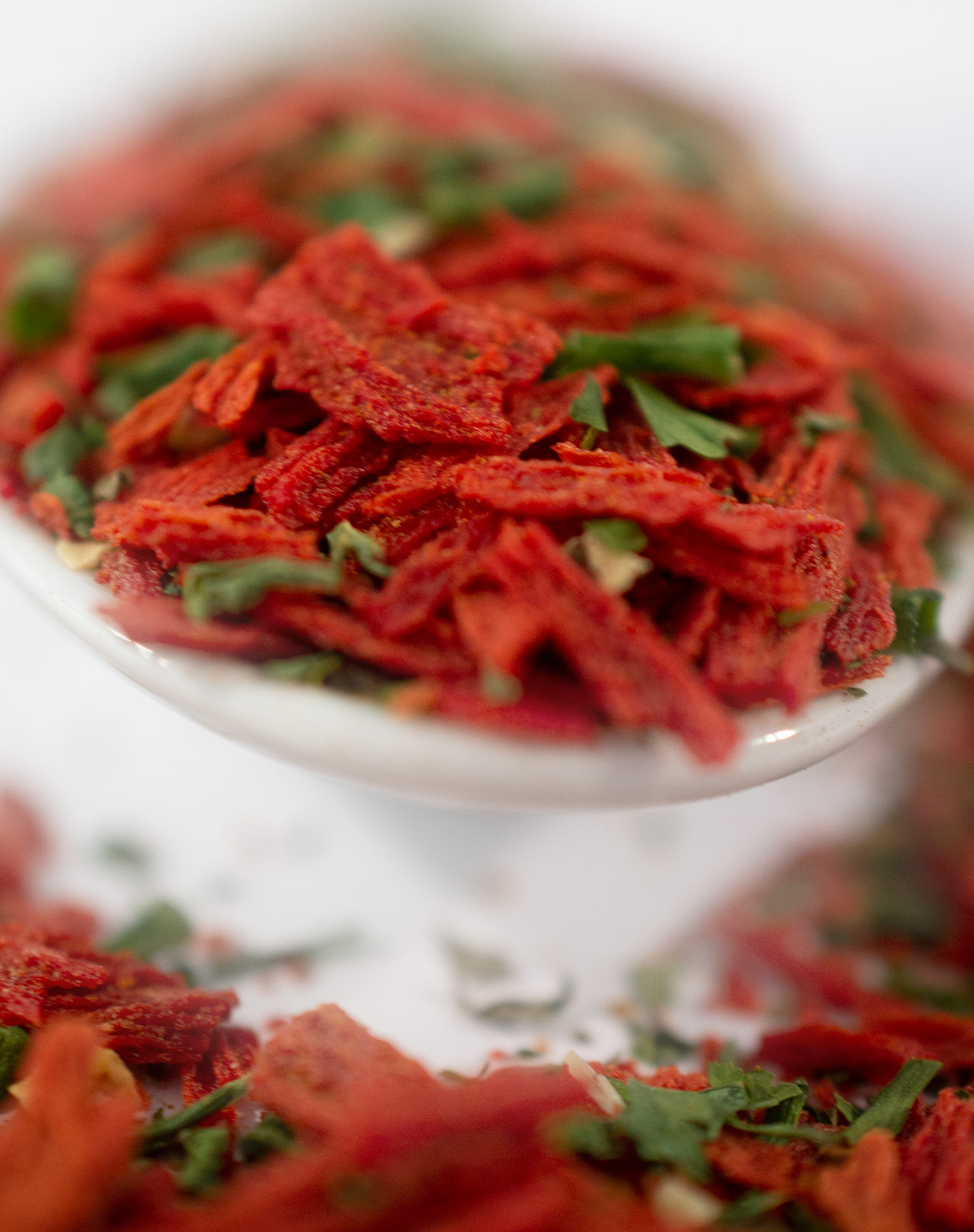 Mit diesem köstlichen Mix aus geschmacksintensiven Tomaten, Petersilie, Pfeffer und ein wenig Knoblauch ist ein Dip für knackige Gemüsesticks oder knuspriges Brot schnell hergestellt. Einfach in Crème fraîche oder Mayonnaise einrühren und es kann gedippt werden. Die Sauce ist auch leckere Begleitung zu Fleisch oder Fisch.
