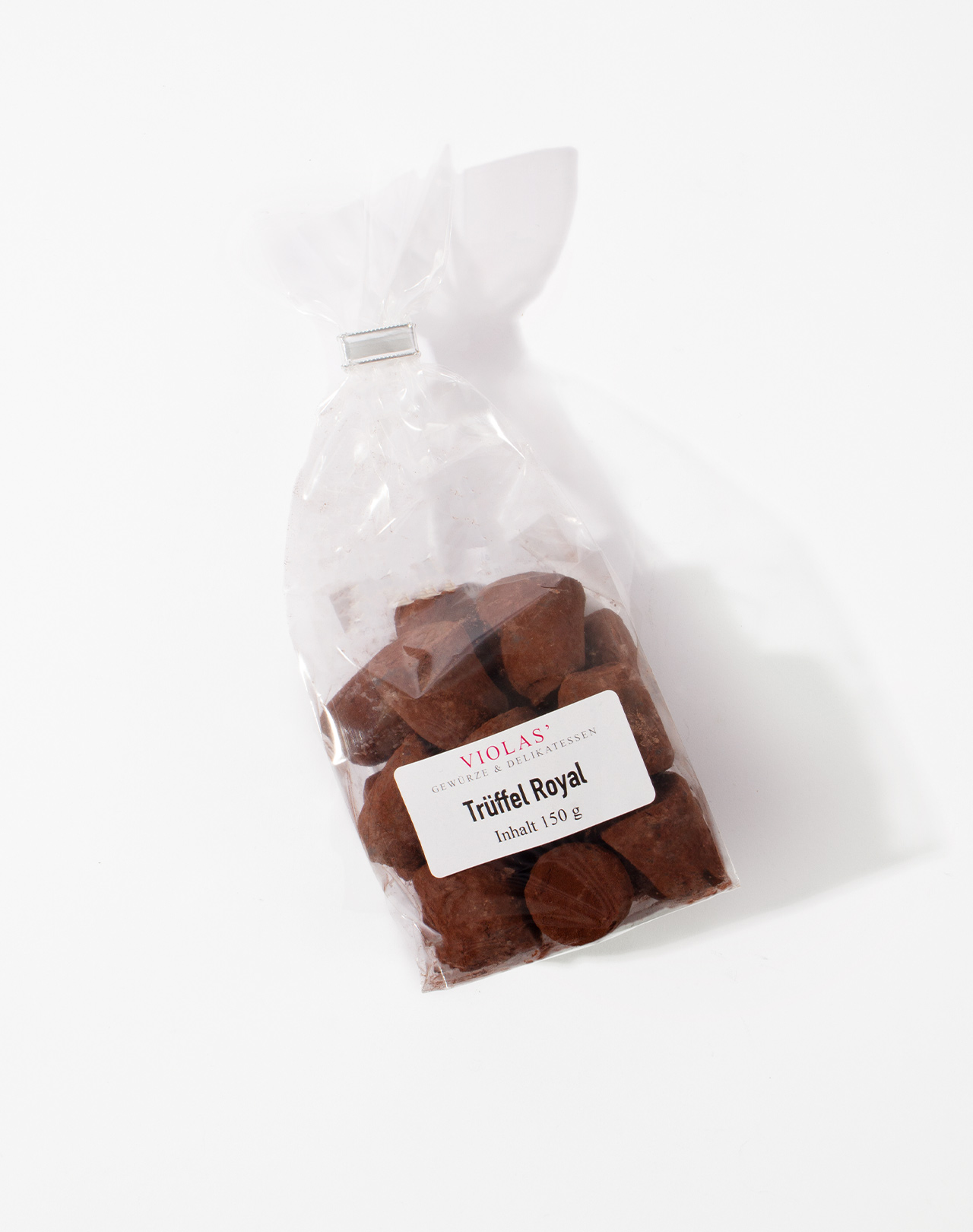 Unsere Trüffel Royal aus Frankreich sind ein echter Klassiker: Wer den puren Geschmack liebt, den zarten Schmelz und eine cremige Füllung, der wählt die »Trüffel Royal«.Abschließend wird jede Trüffel mit feinem Kakaopulver ummantelt.