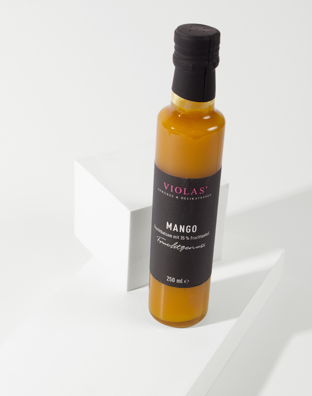 Mango 35 %, Zucker, Branntweinessig (mit Antioxidationsmittel, KALIUMMETABISULFIT)