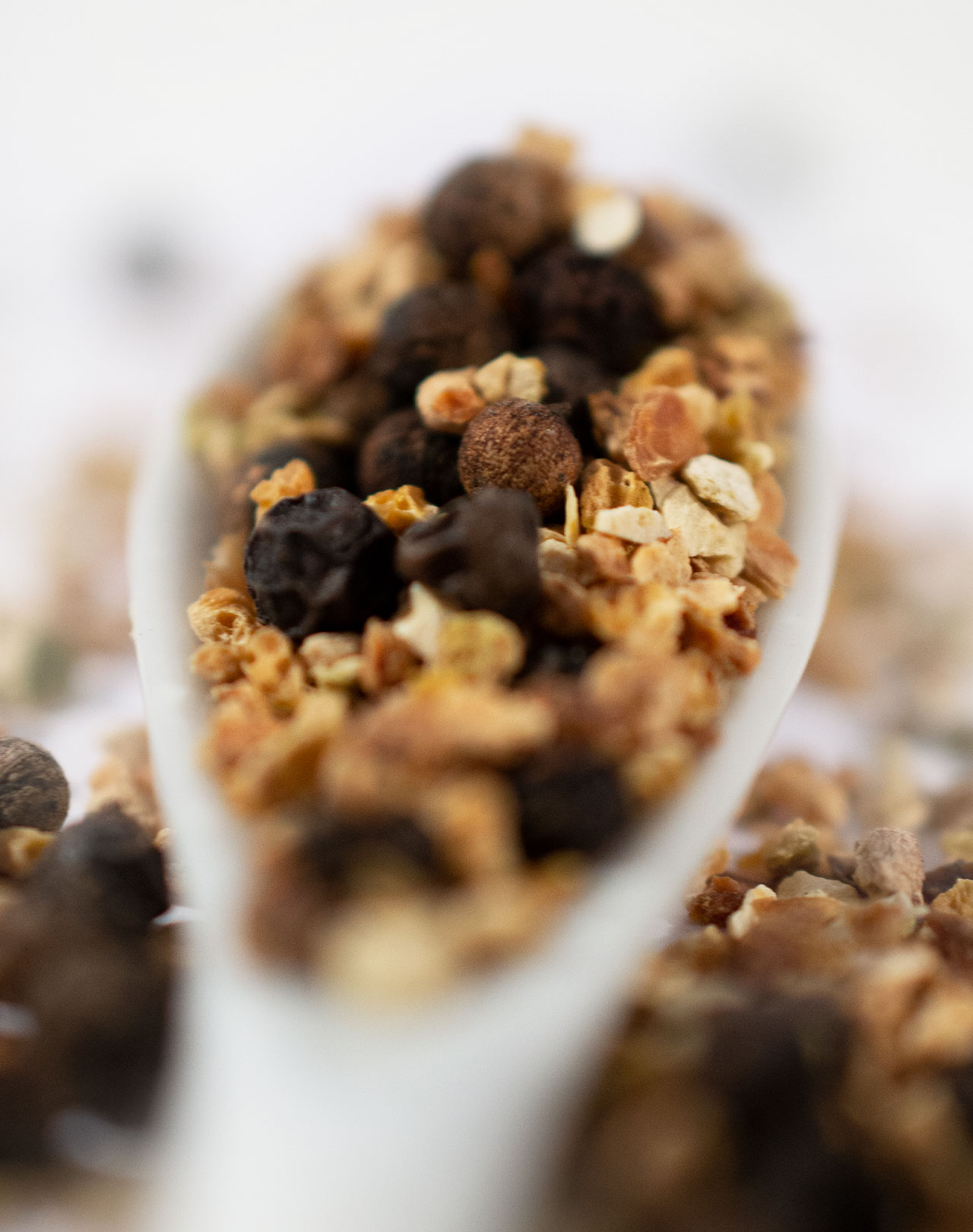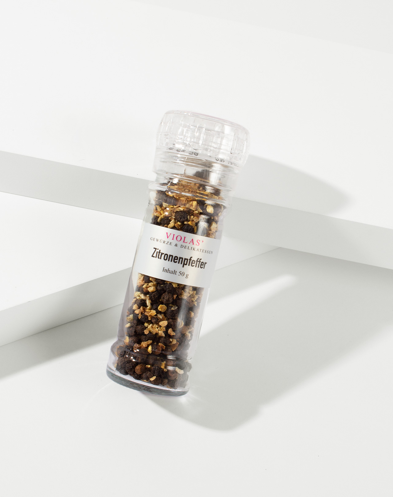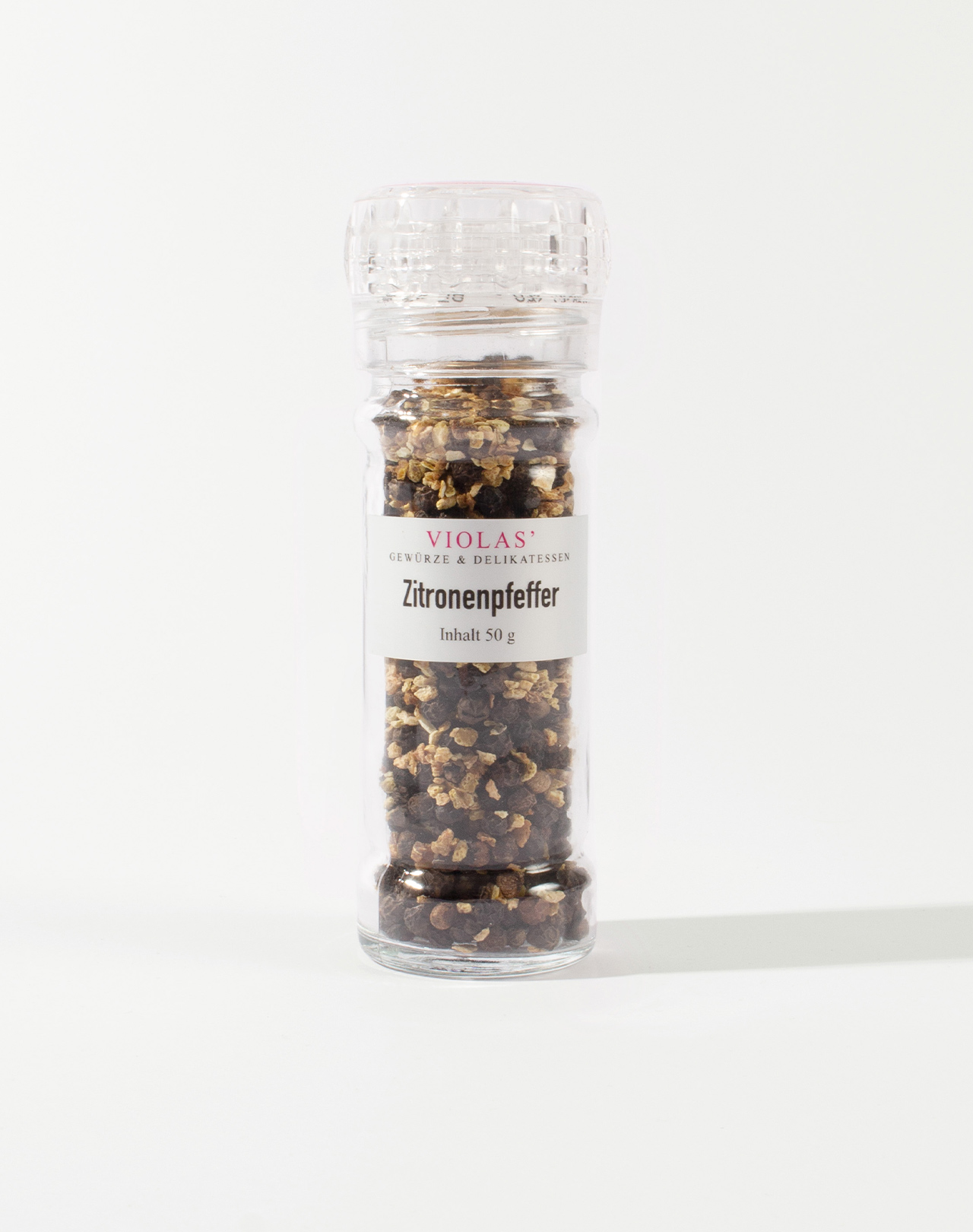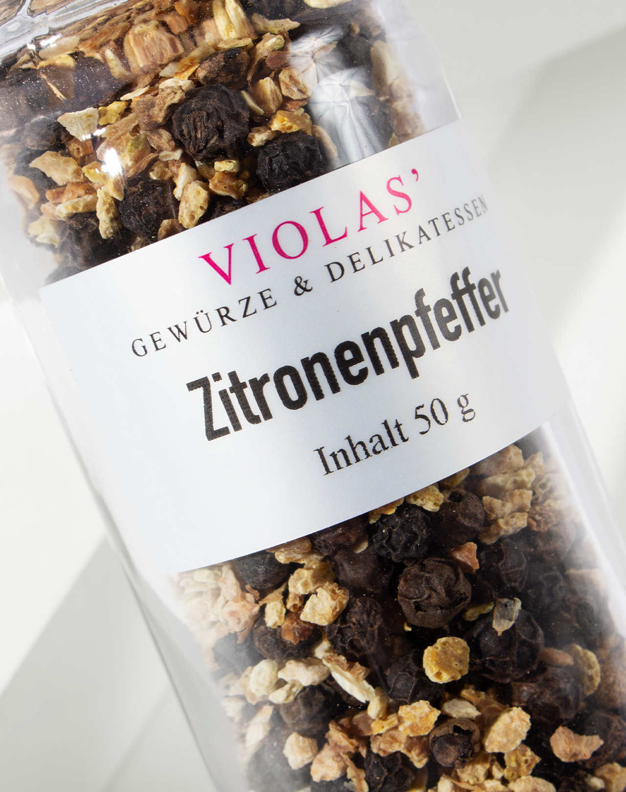 Diese leckere Pfeffermischung enthält schwarzen Pfeffer und Zitronenschale. Die warme Schärfe des Pfeffers und die fruchtig-säuerliche Note der Zitrone harmonieren besonders gut mit Fisch und Geflügel.