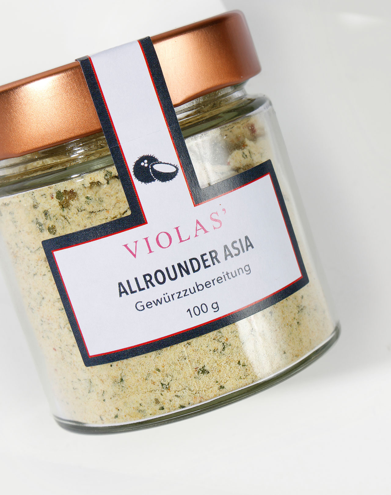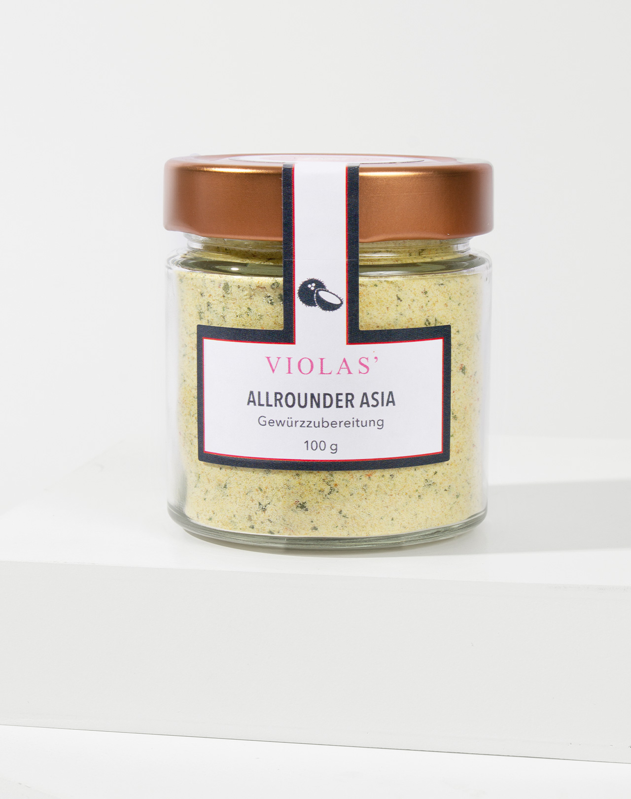Diese Allrounder Gewürzzubereitung kann mehr als nur Brühe oder Suppe. Mit unserem »Allrounder Asia« lassen sich Fisch- oder Reisgerichte abschmecken, er ist blitzschnell die Basis für eine asiatische Suppe oder wird mit etwas Joghurt verrührt ein herrlicher Dip. Aromen wie Kokosnuss, Ingwer, Zitronengras und Koriander sorgen für den typisch asiatischen Geschmack. Gewürzzubereitungen gibt es auch als Allrounder »Scharf« und »Mediterran«