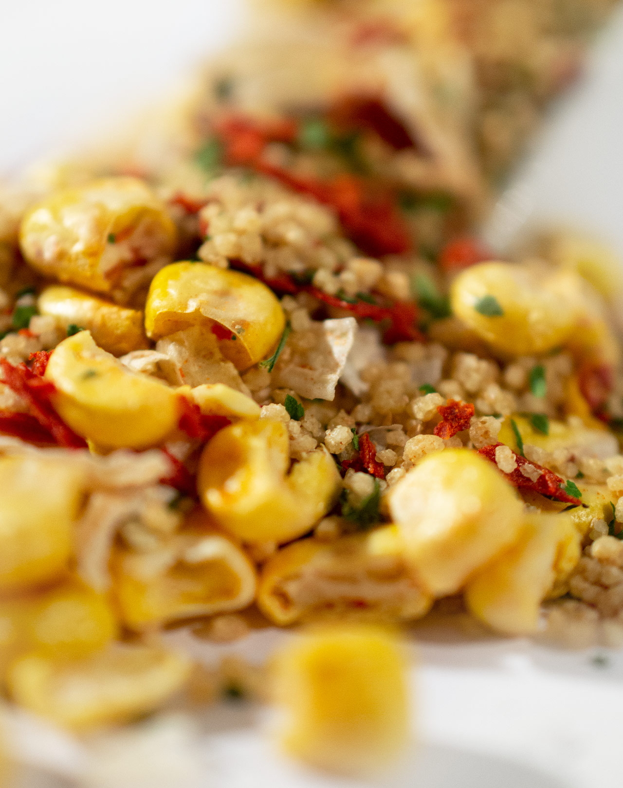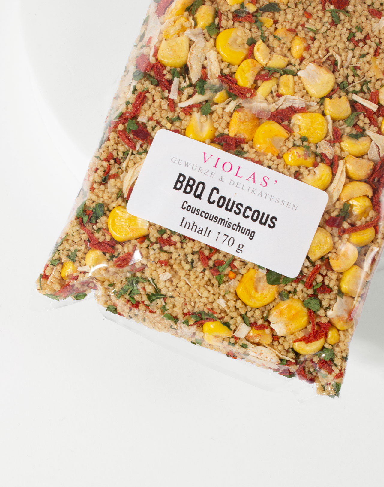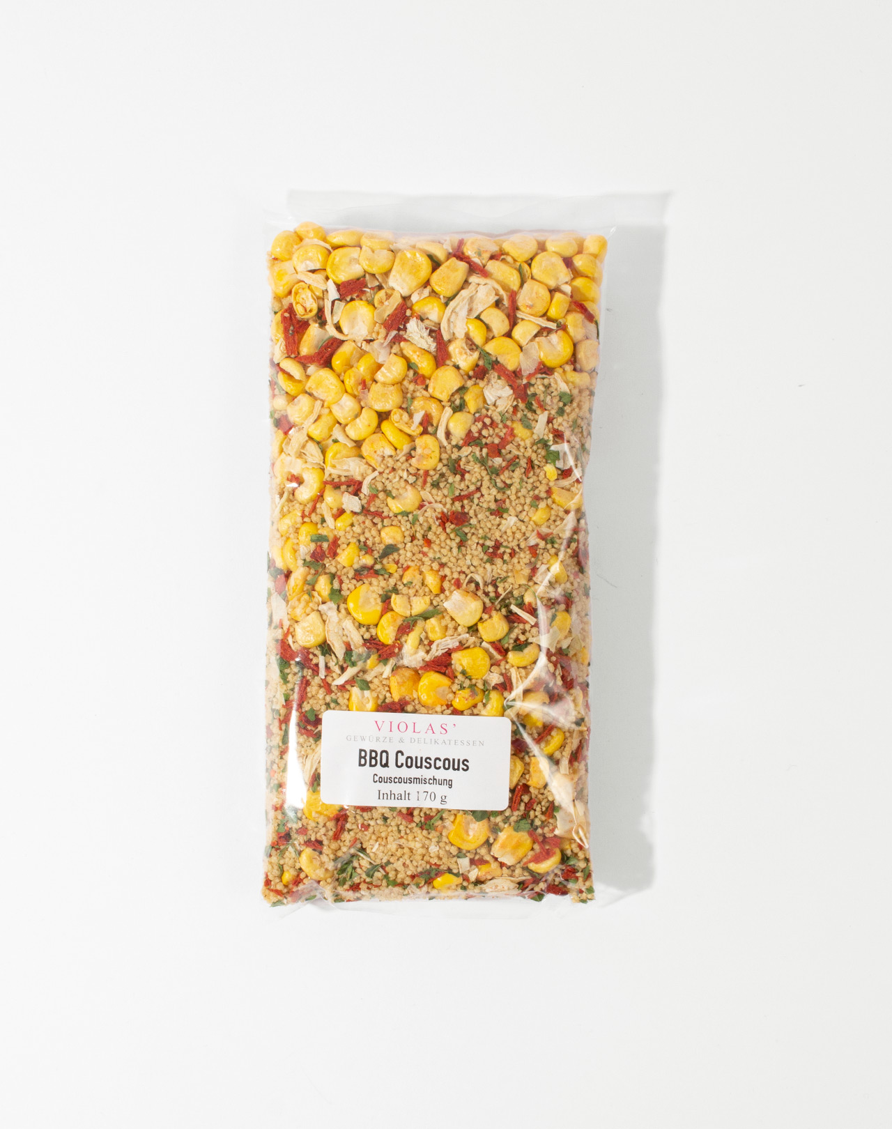 Diese Mischung ergibt ein köstliches Couscous-Gericht mit Raucharomen von geräucherter Paprika. Kontrastiert von süßem Mais und intensiven Tomaten, ergänzt von Zwiebeln, leichter Schärfe von Chili und Knoblauch. Ein Couscous ist sehr schnell zubereitet. Die Menge ergibt ein Hauptgericht für zwei Personen oder ist als Beilage für vier Personen ausreichend. Wenn man noch Feta, Salatgurke oder frische Tomaten hinzufügt, wird aus dieser Mischung auch einen herrlichen Salat. Vielleicht für die nächste Grillparty?