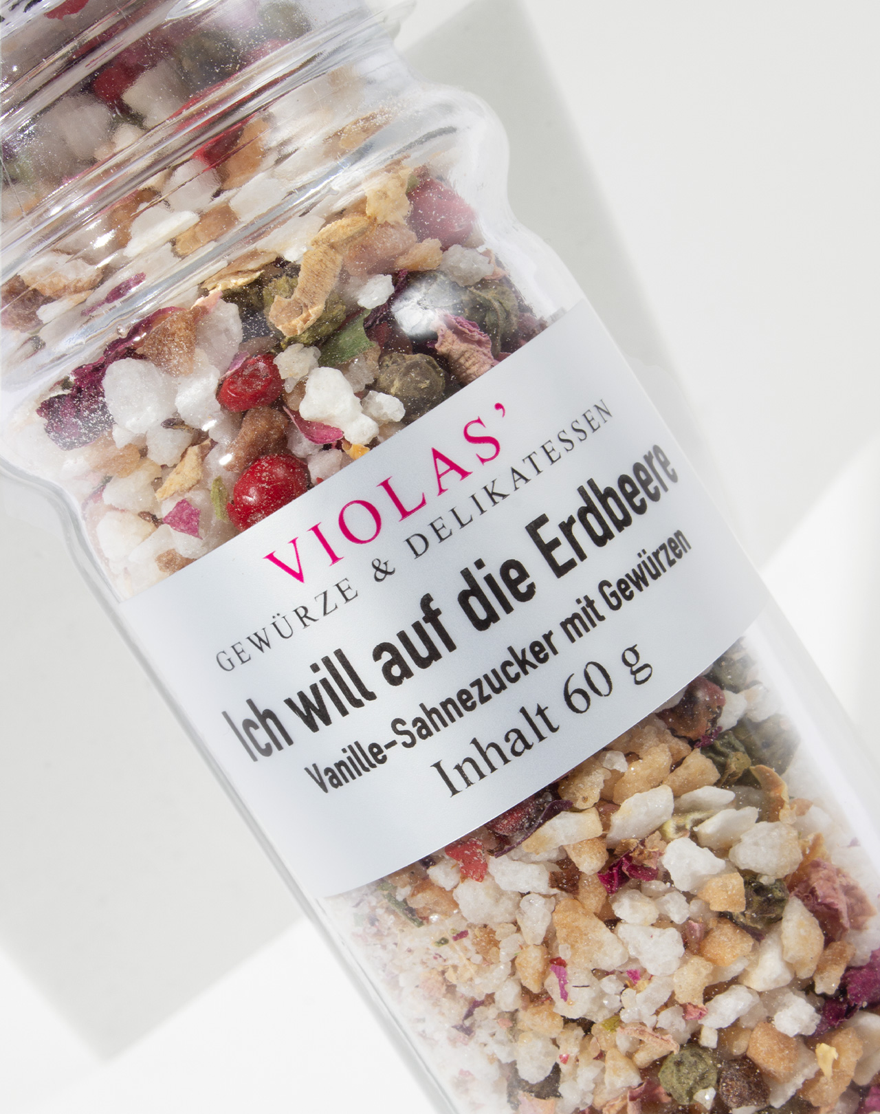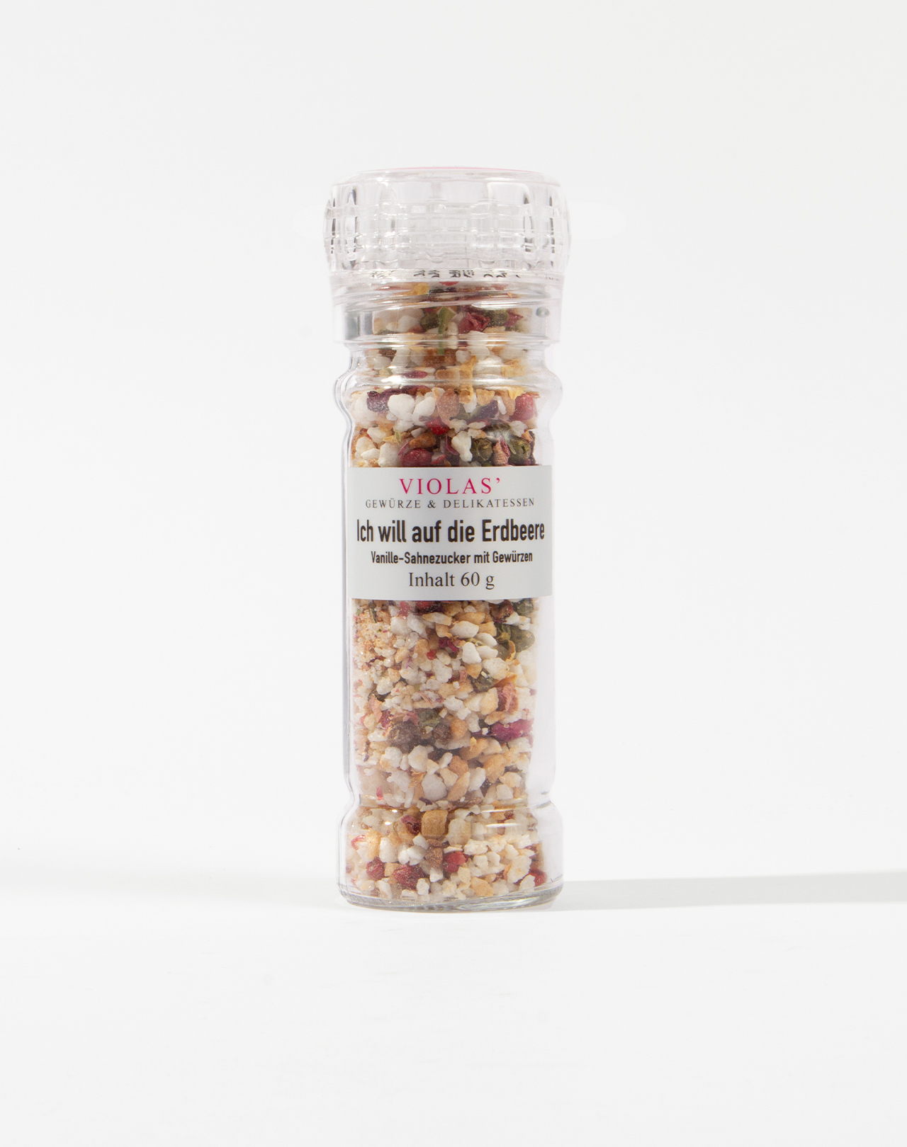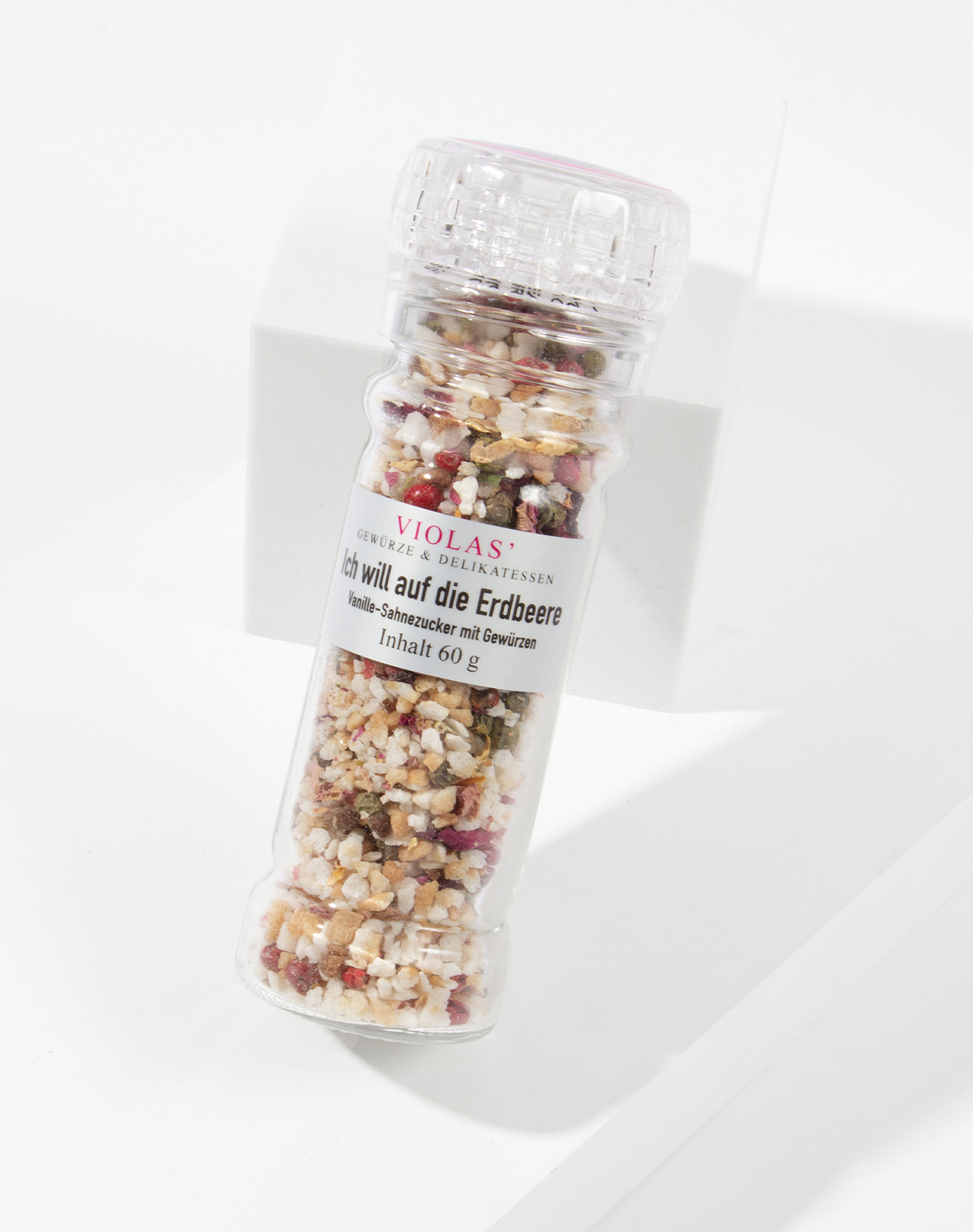 Die Süße des Vanille-Sahnezuckers trifft auf die würzig-blumige Note von zweierlei Pfeffer und Rosenblütenblättern. Die Kombination zaubert ganz unerwartete Akzente auf Erdbeeren – in einem süßen Dessert ebenso wie in einem herzhaft-fruchtigen Blattsalat mit Erdbeeren.