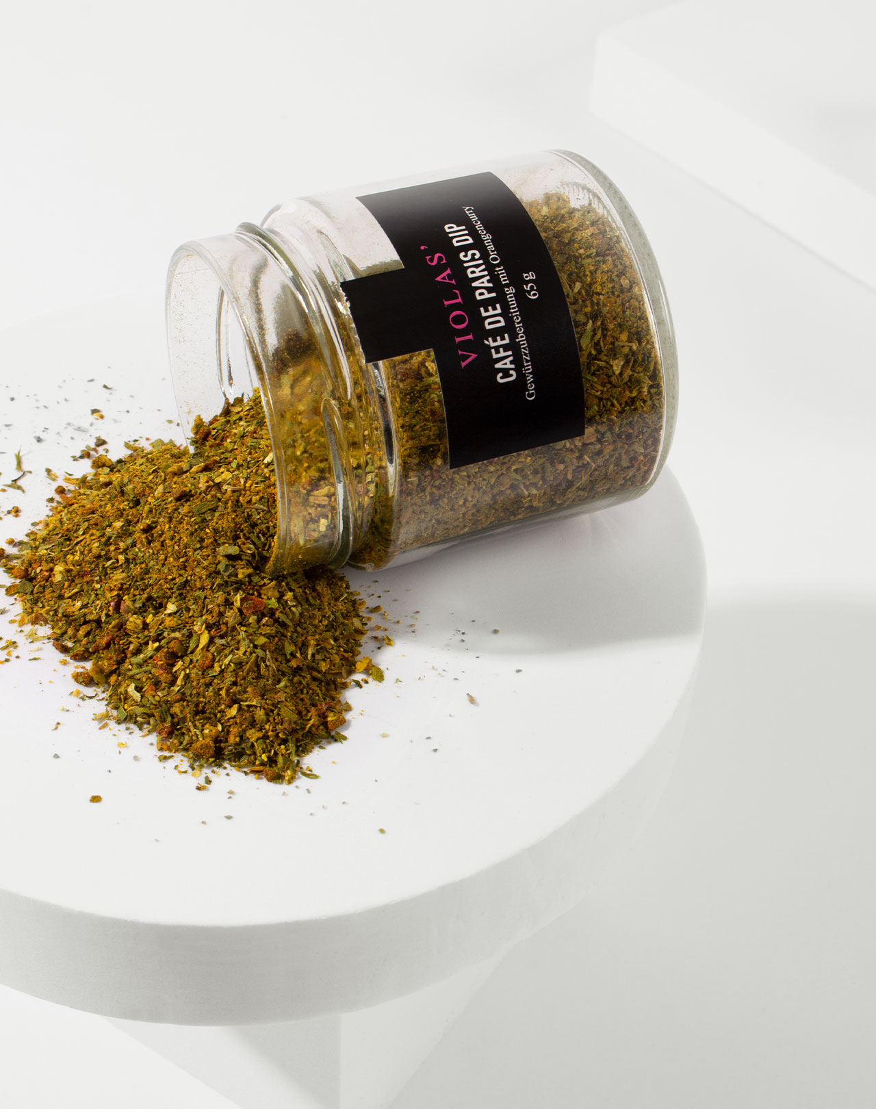 Die Gewürzmischung »Café de Paris« hat eine lange Tradition. In den 1930er Jahren wurde sie in Genf für eine gewürzte Buttersauce kreiert und schnell international bekannt und beliebt. Wir haben den Klassiker weiterentwickelt und ihn um eine frische Note von Orangencurry ergänzt. Die Mischung eignet sich für Saucen, Dips oder Kräuterbutter. Aber auch Pasta, Meeresfrüchte und Suppen lassen sich mit »Café de Paris Dip mit Orangencurry« raffiniert würzen.