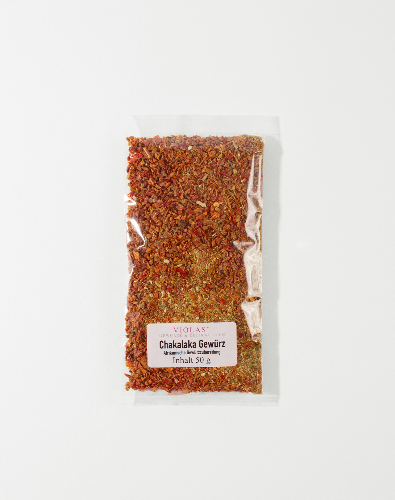 Chakalaka ist eine vielseitige afrikanische Gewürzmischung, die die Geschmacksnerven tanzen lässt. Paprika, Karotten Zwiebeln, Curry, Tomaten und Knoblauch passen hervorragend in Gemüseeintöpfe, würzen Hühnerfleisch und Fisch für den Grill oder zaubern mit Crème fraîche einen leckeren Dip. Was will man mehr?