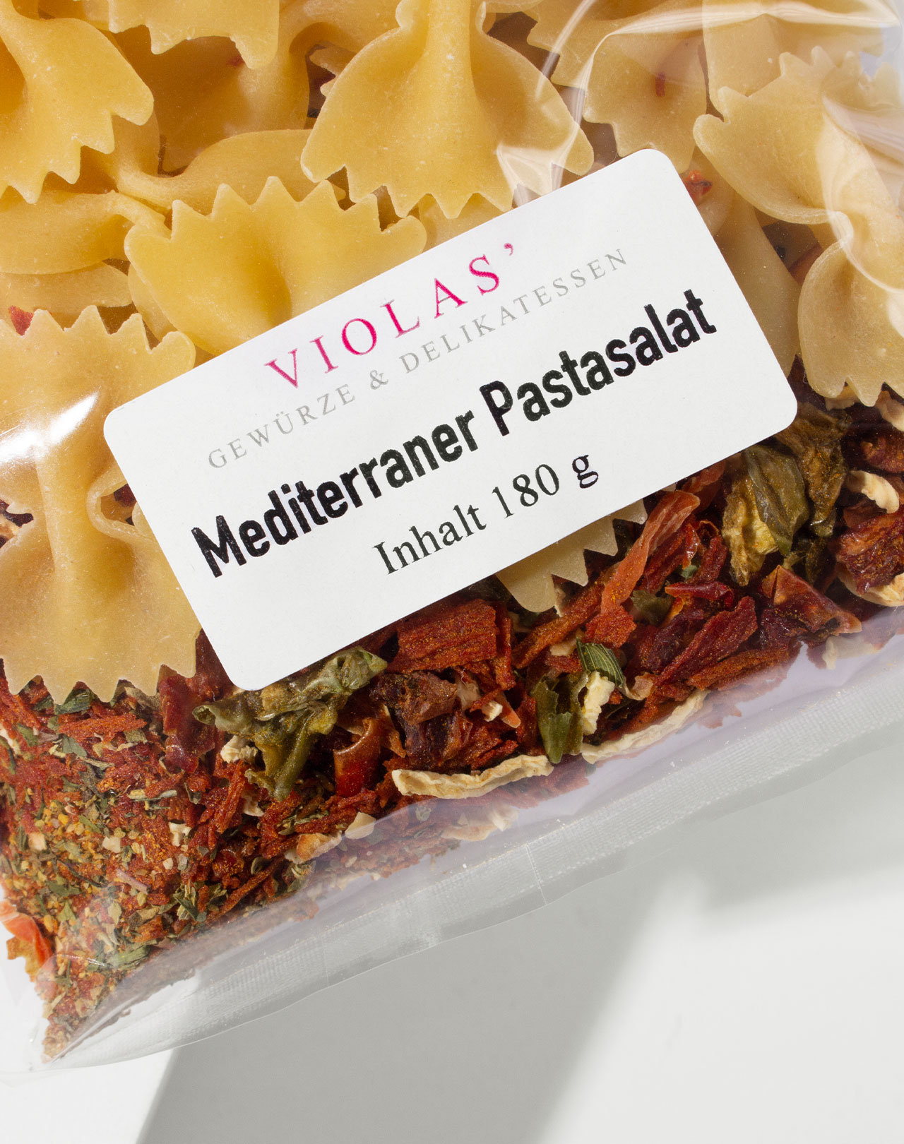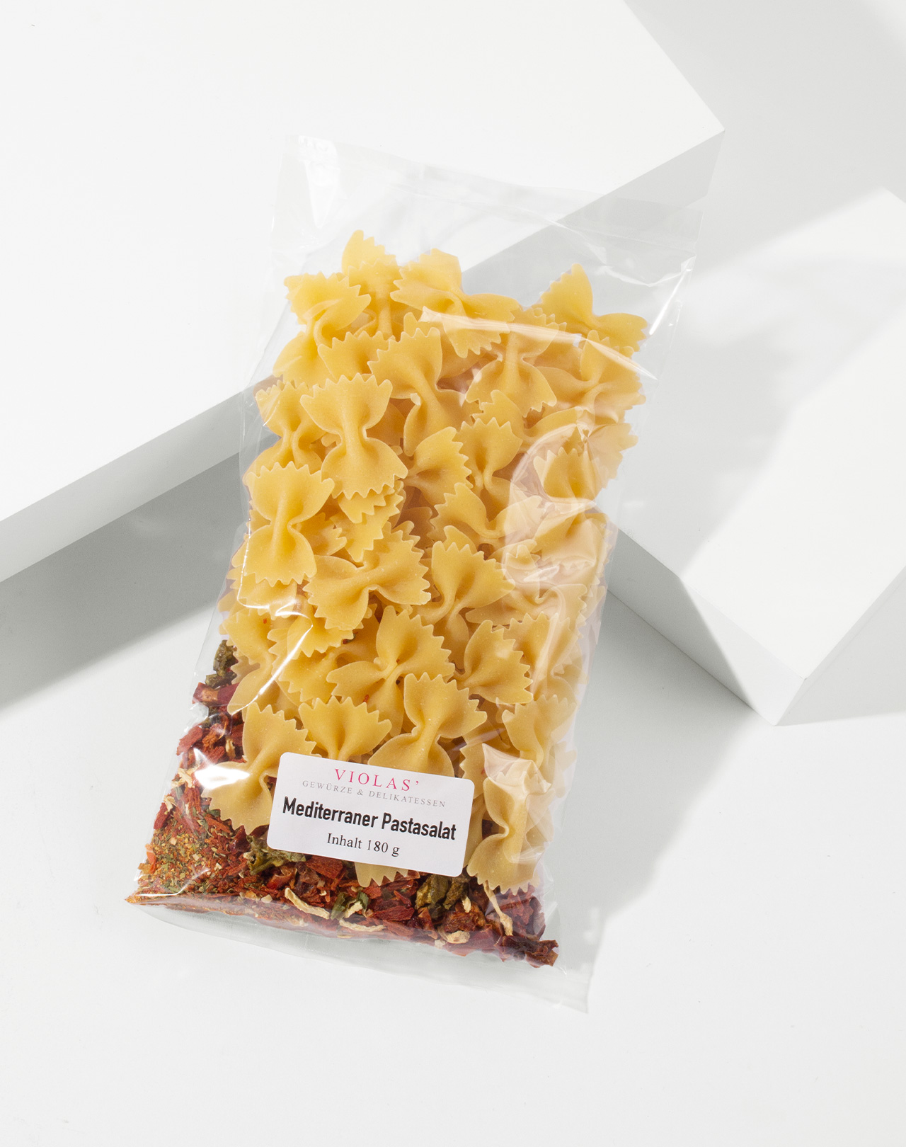 Farfalle Nudeln mit einer aromatischen Mischung aus Tomaten, Basilikum, Oregano und Rosmarin, das macht diesen Pastasalat so mediterran. Genau richtig, wenn’s wieder schnell gehen soll. Denn dieser Salat ist im Nu zubereitet.
