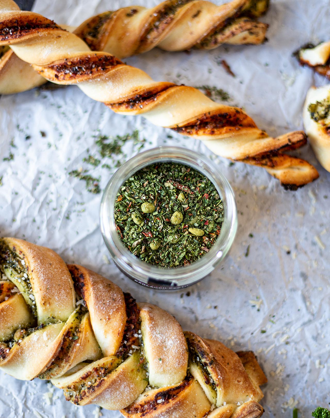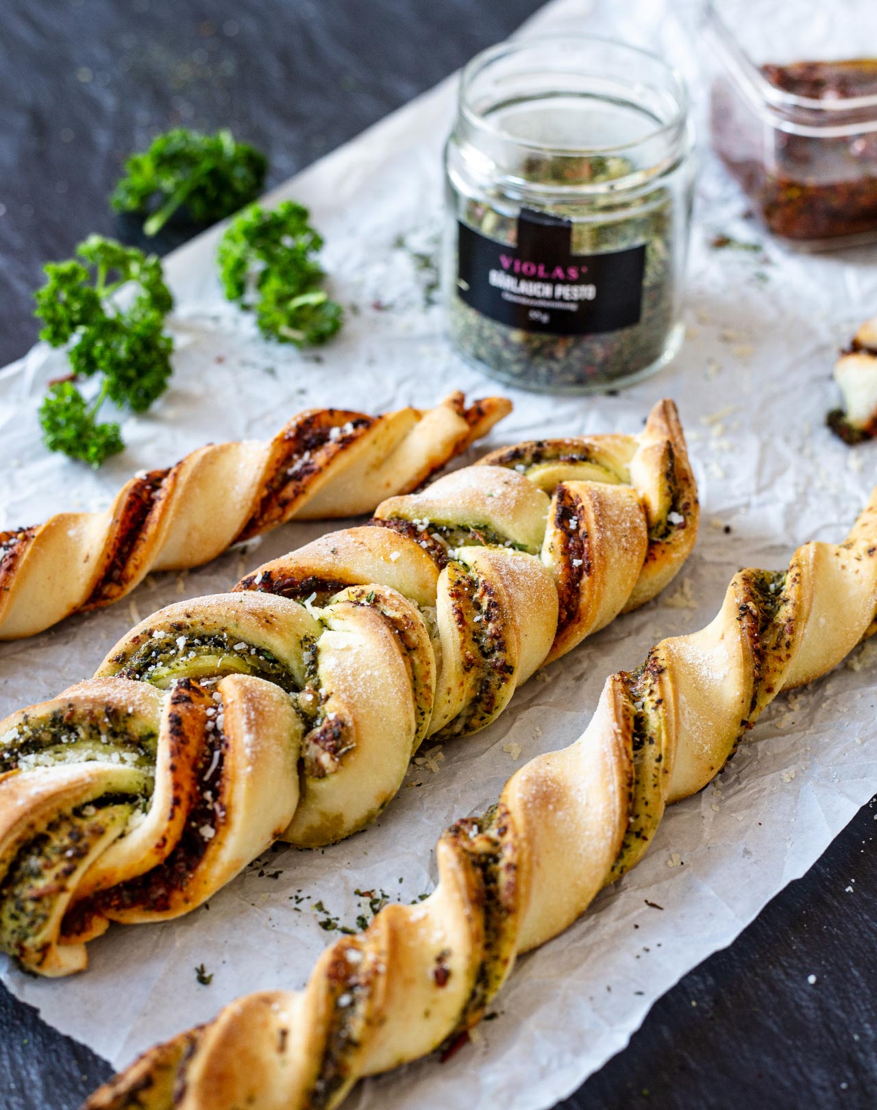 Ca. 4 EL der Mischung mit 2 EL Wasser verrühren, 4 EL Olivenöl hinzugeben und 10 Minuten ziehen lassen. Perfekt auf geröstetem Ciabatta oder zu Pasta.