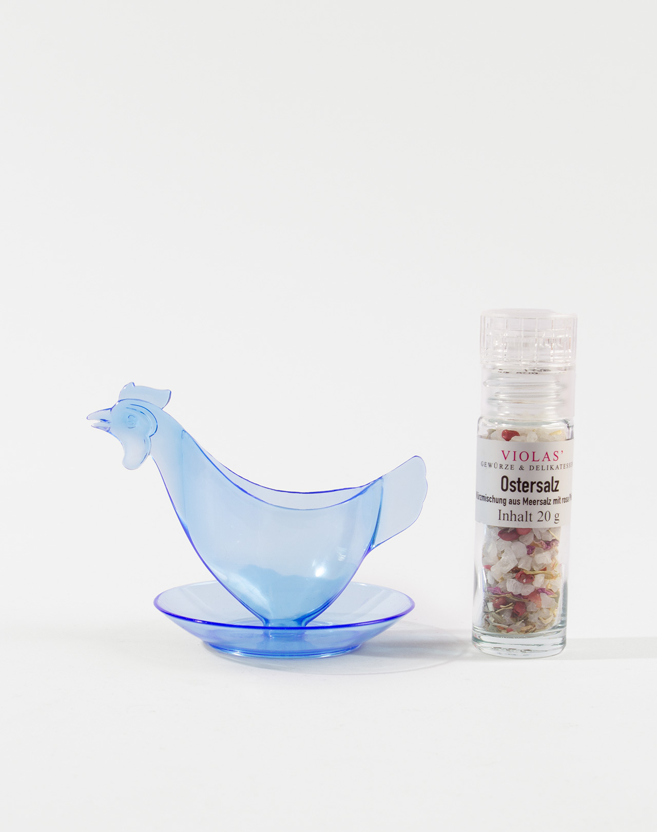 Bringen Sie einen Hauch von Retro-Chic auf Ihren Frühstückstisch mit unserem farbenfrohen Eierbecher im strahlenden Blau. Dieser auffällige Eierbecher ist nicht nur ein Blickfang, sondern verleiht Ihrem Frühstück auch eine fröhliche Atmosphäre, perfekt für die Osterzeit. Als zusätzliches Highlight enthält das Set eine Mini Mühle mit feinem Ostersalz, um Ihre Eierspeisen perfekt zu würzen und Ihren Geschmackssinn zu verwöhnen.