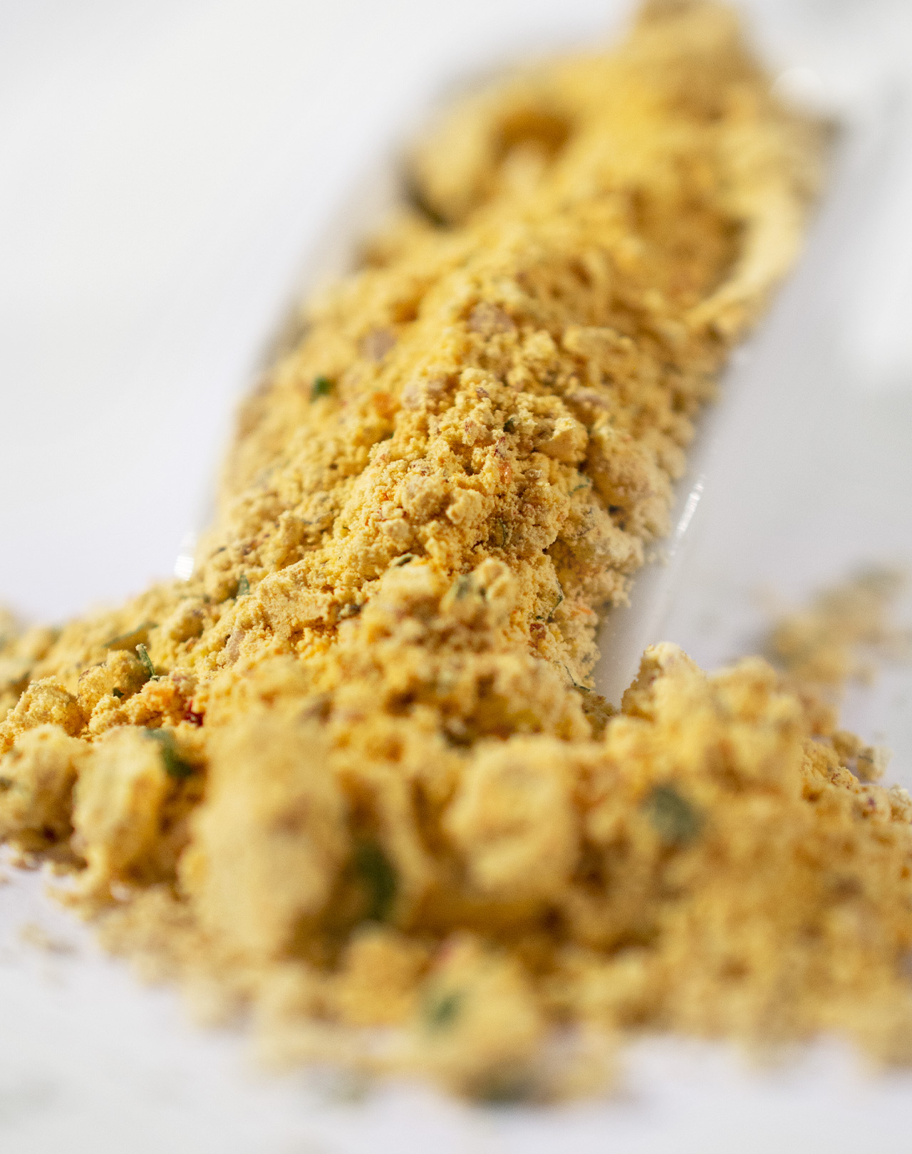 Kichererbsen 69%, Paprika, Sesam, Cumin, Salz 2%, Knoblauch, Kurkuma, Zwiebel, Koriander
