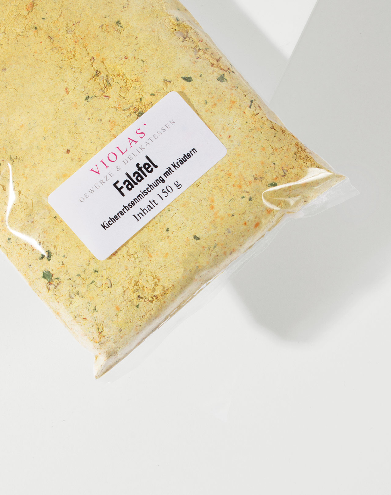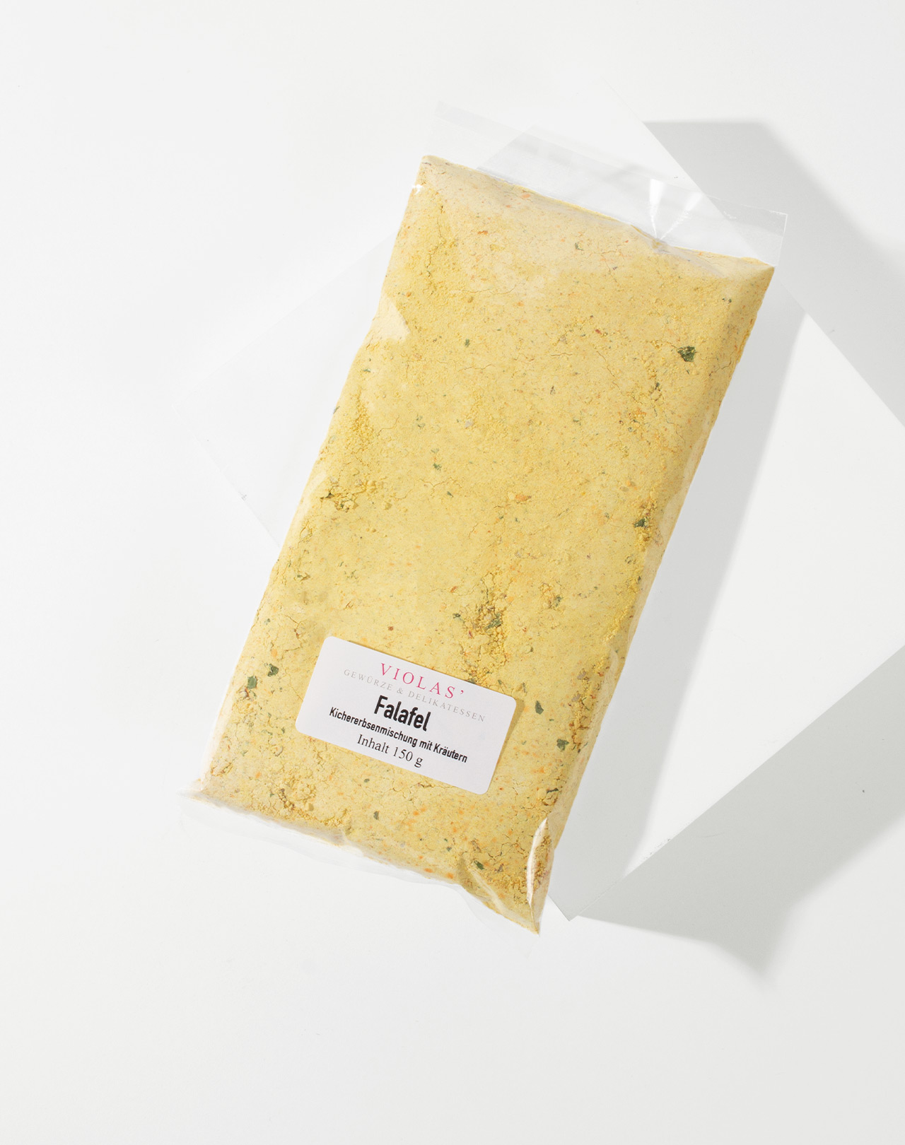 Den Beutelinhalt in 260ml kochendes Wasser einrühren und 15 min quellen lassen. Aus dem Teig ca. 16 Bällchen formen und in Öl ausbraten. Falafel bevorzugt mit Gemüse und Salat servieren. Dazu ist VIOLAS' orientalischer Minz Dip ein Muss.