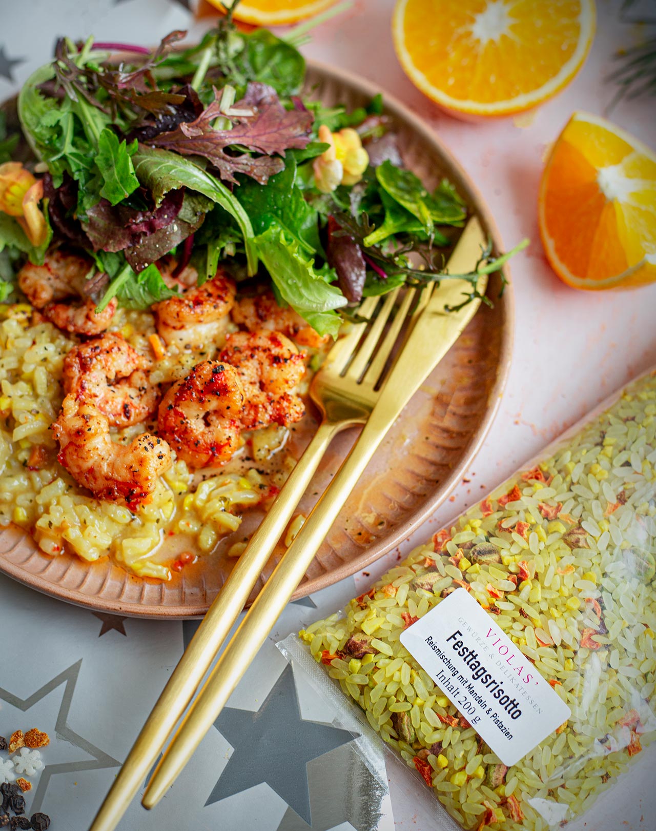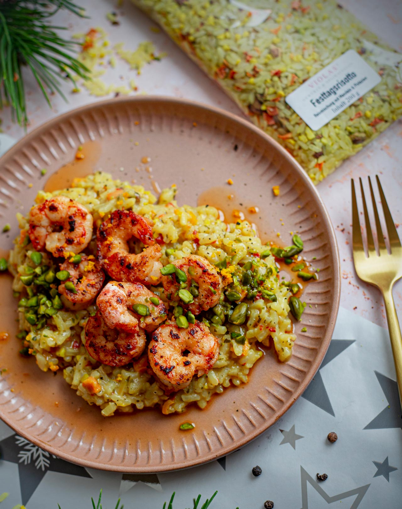 Dieses feine Risotto bekommt durch Pistazien und Mandeln einen edlen nussigen Geschmack und ist mit Kräutern und Gemüse harmonisch abgeschmeckt. Eine wunderbare Beilage zum Fest oder ein Hauptgericht in der Adventszeit, das einfach und schnell zubereitet ist.