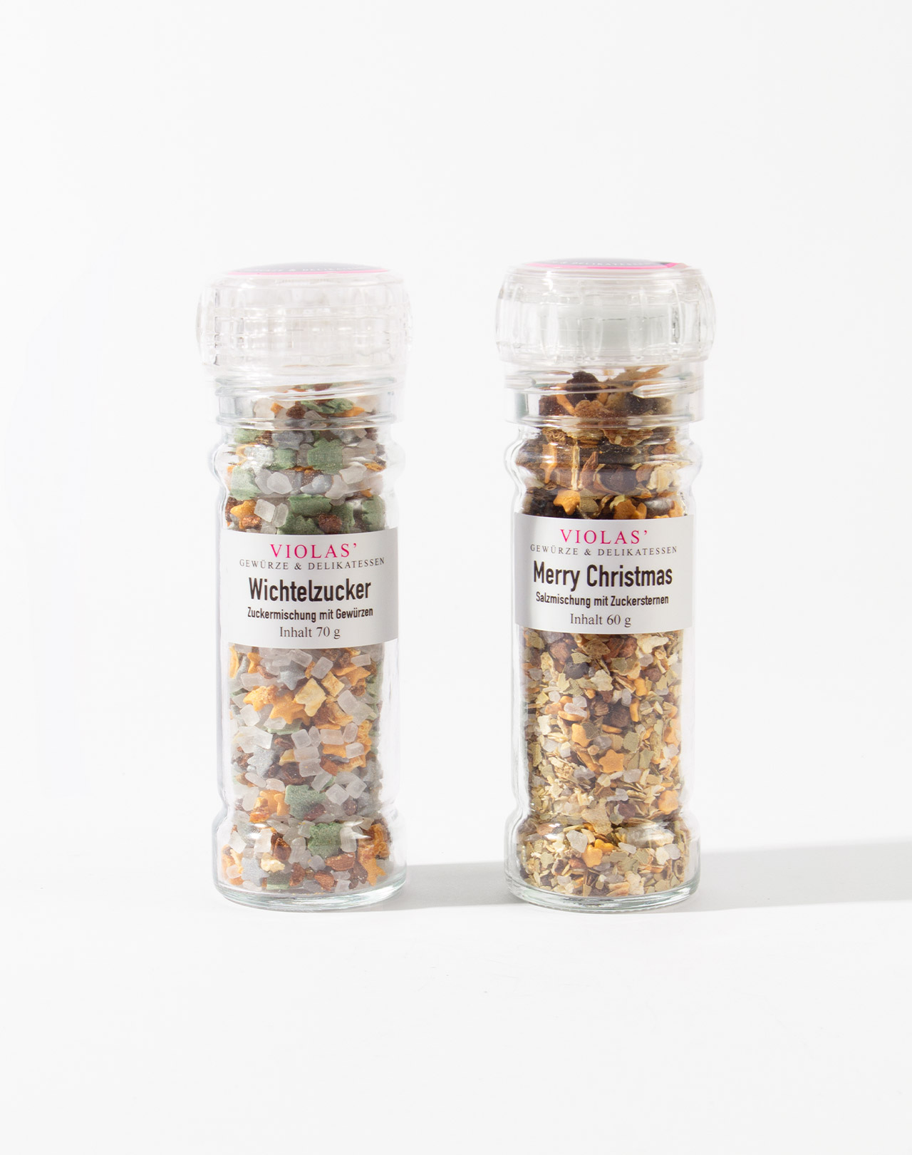 - VIOLAS’ Merry Christmas – Salzmischung mit weihnachtlichen Gewürzen und dekorativen Zuckersternchen