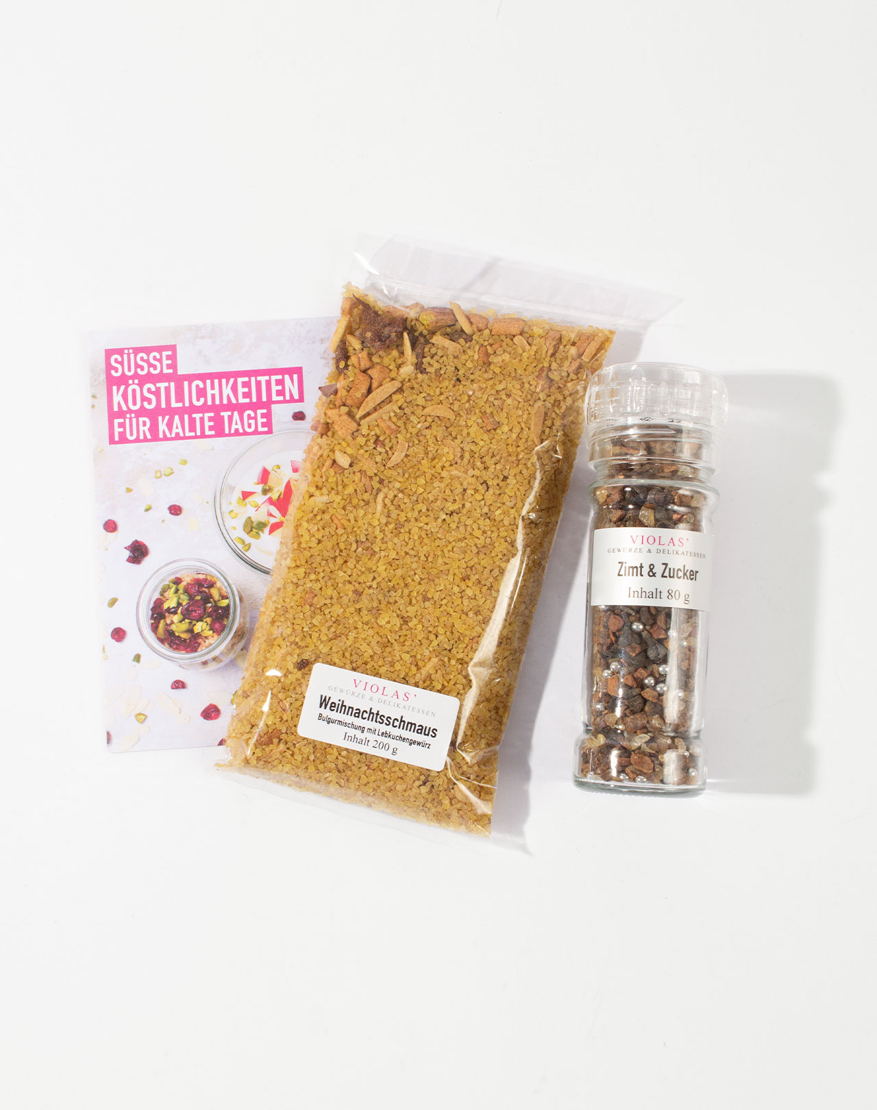Sehr lecker unser Set »Seelenwärmer«: Den süßen Bulgur mit Cranberries, Mandeln, Pistazien, Lebkuchengewürz genießt man am besten mit Vanillesauce. Gewürzt wird mit der Mühle »Zimt & Zucker« – das tut gut! Das gemütliche Papphäuschen ist die genau passende Verpackung. Eine Rezeptkarte mit anderen süßen Leckereien für die Weihnachtszeit ist ebenfalls dabei. Ein tolles Geschenk für jede Seele, die etwas Wärme braucht.