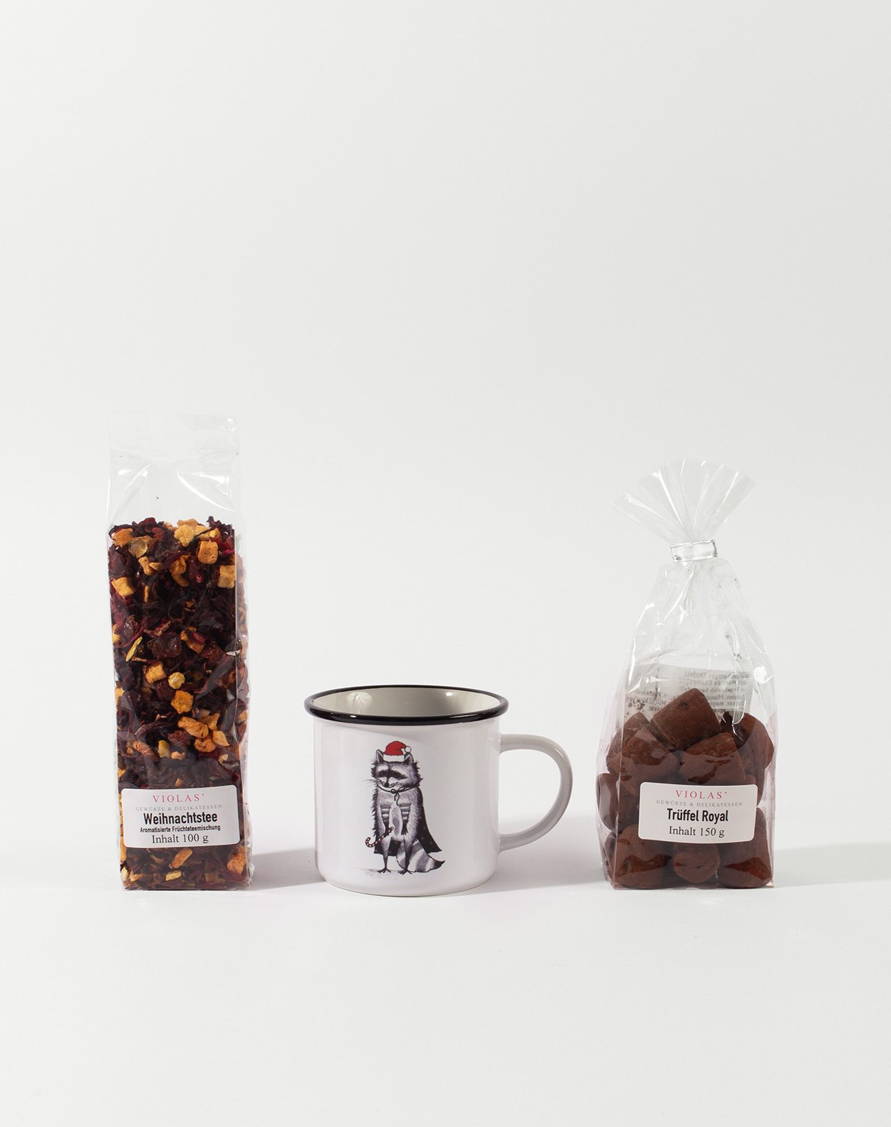 Das Genießer-Set »Weihnachts"zaubär"« ist das perfekte Geschenk, um sich selbst oder anderen eine gemütliche Auszeit in der Weihnachtszeit zu gönnen. Es enthält eine feine Auswahl aus festlichem Weihnachtstee, unsere unwiderstehlichen Trüffel Royal mit zartem Schmelz und eine bezaubernde Keramiktasse mit einem niedlichen Weihnachtswaschbär, die das Set optisch abrundet. Ein Genuss für alle Sinne – ideal für winterliche Teepausen und süße Naschmomente. Dieses Set bringt weihnachtliche Wärme und Freude in jedes Zuhause!