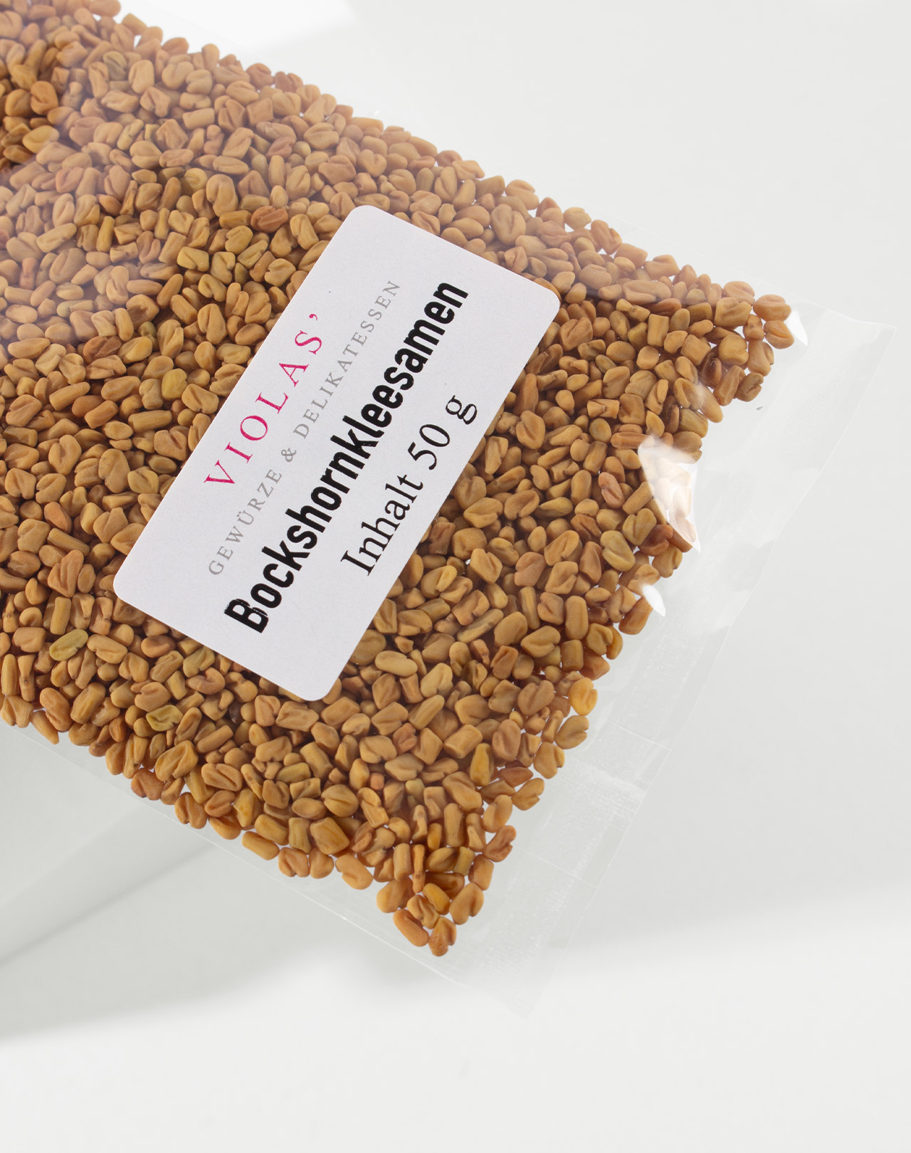 Bockshornkleesamen sind wesentlicher Bestandteil von vielen Currymischungen. Es wird aber auch gern als Einzelgewürz in Dips, Chutneys, Käsesaucen oder Suppen und Eintöpfen genommen, weil es über einen kräftig-würzigen Geschmack verfügt. Um das schöne Aroma hervorzuheben, sollten die Bockshornkleesamen in der Pfanne kurz angeröstet werden. Jedoch nicht zu lange und zu heiß, sonst werden die Samen bitter.