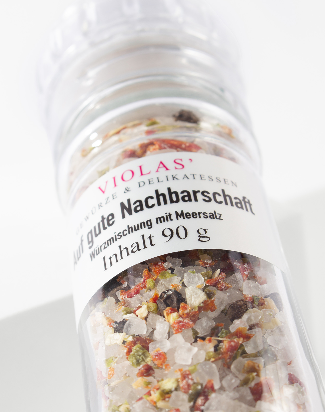 Für den richtigen Start in der neuen Wohnung mit den netten Menschen von nebenan gibt es bei VIOLAS’ die passende Mühle: Unsere köstliche Salzmischung »Auf gute Nachbarschaft« sorgt garantiert für ein harmonisches Miteinander!