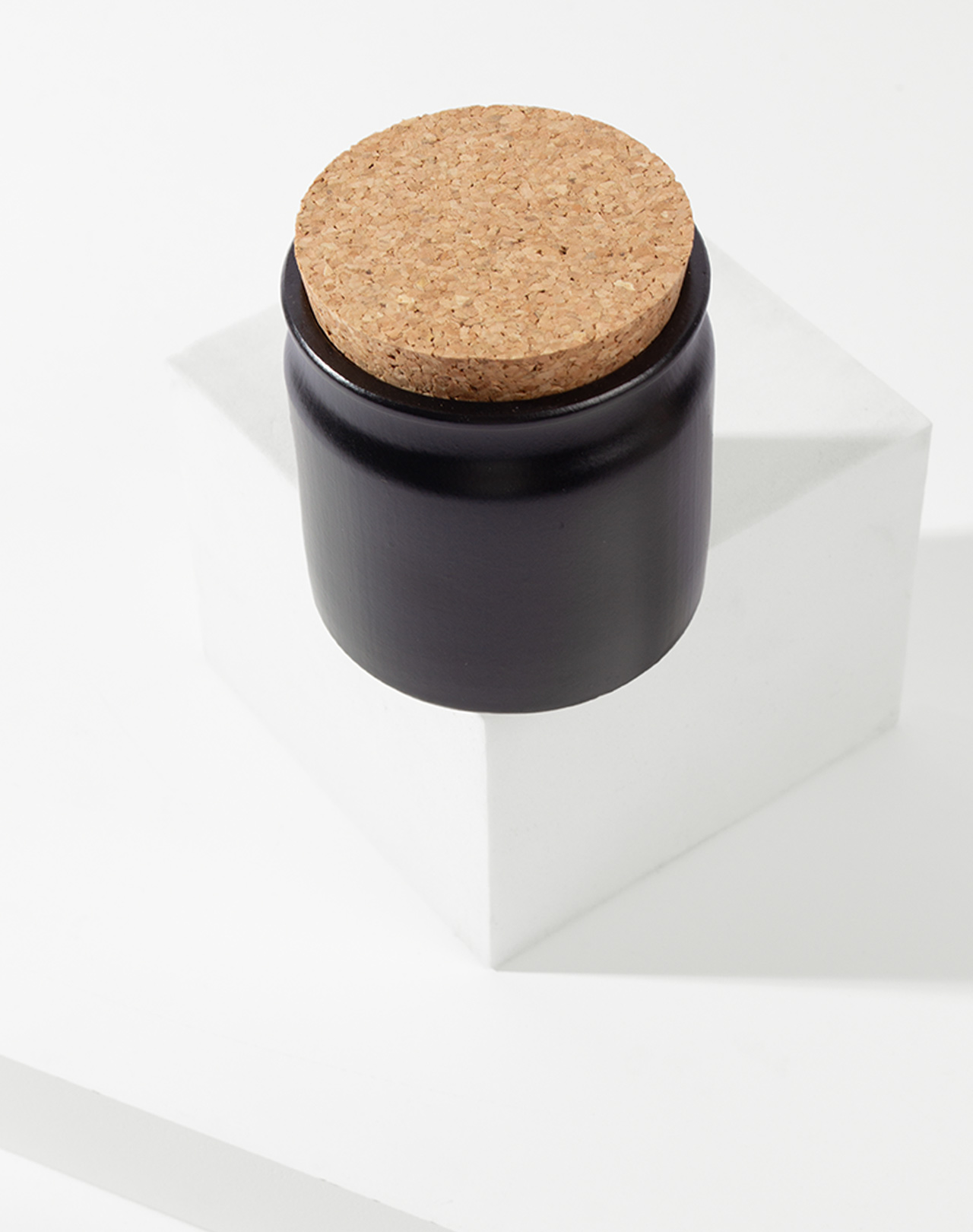 Gewürztopf aus Keramik, schwarz mit Korkverschluss