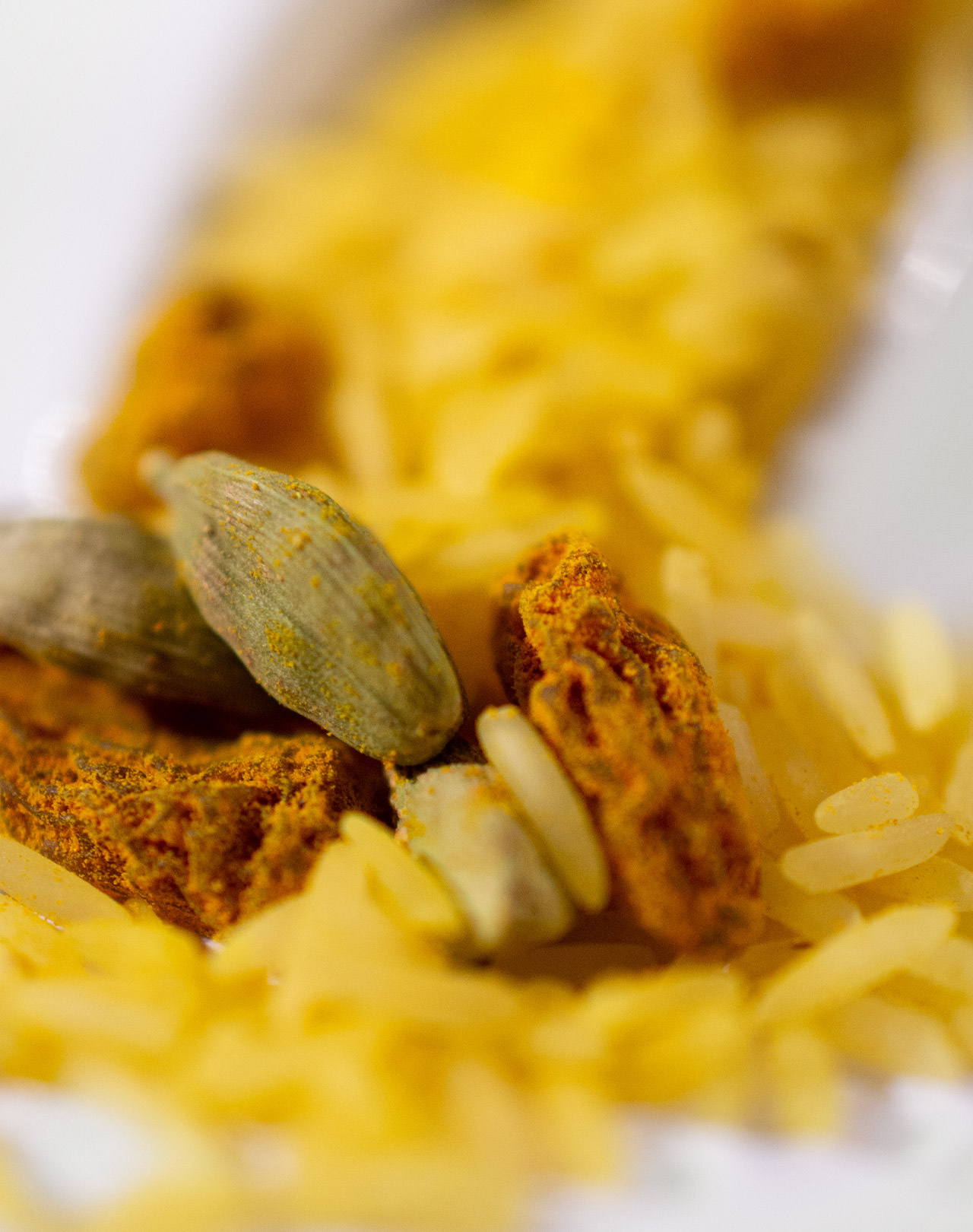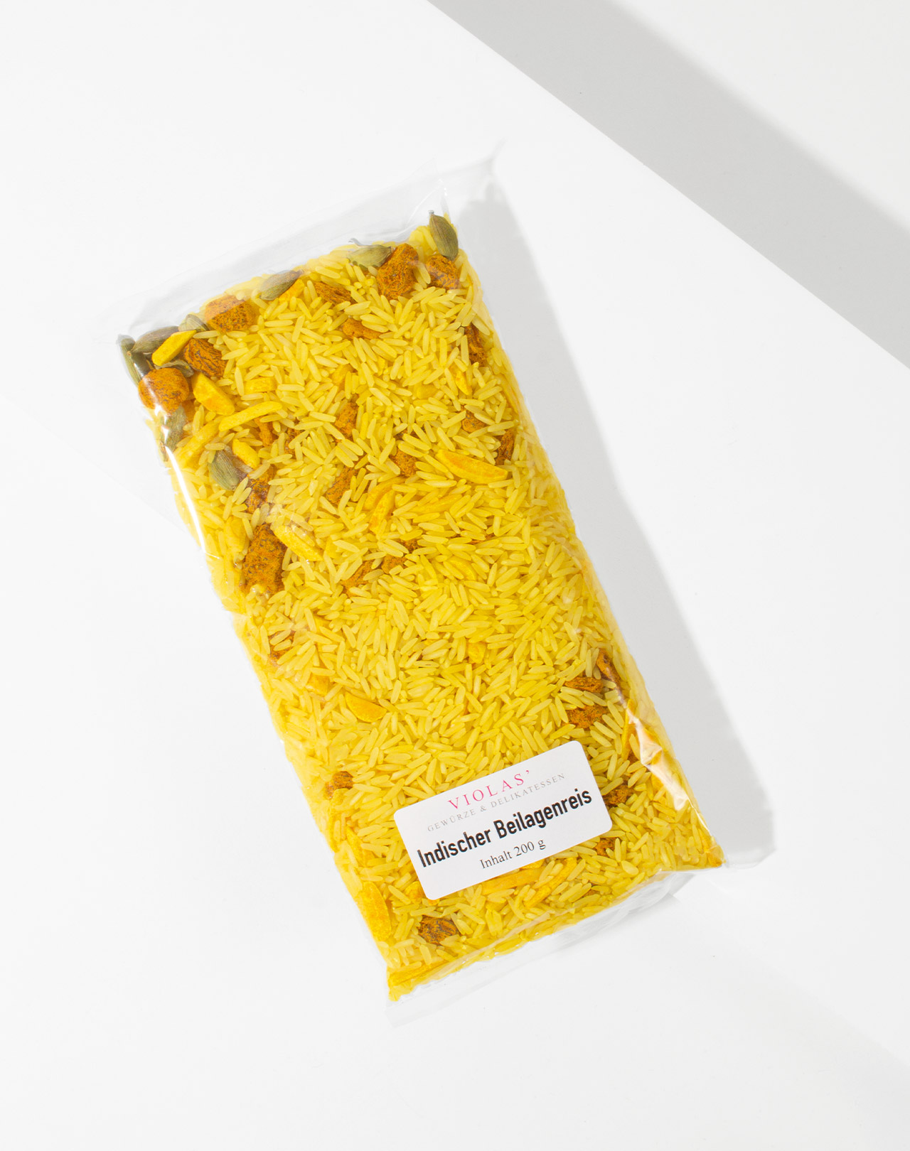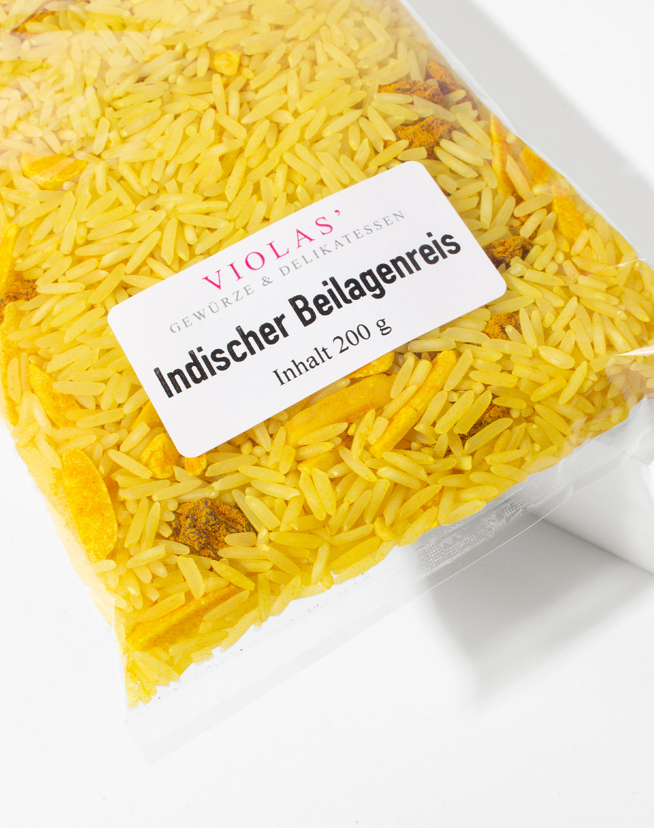 Was macht diesen Beilagenreis so indisch? Die Würzung mit Kurkuma und Kardamom. Und die Kombination von Süße und Herzhaftigkeit aus Gewürzen, edlem Basmatireis, Mandeln und Sultaninen. Alles zusammen macht diesen Reis zu einem authentischen Begleiter für indische Gerichte mit Fleisch, Gemüse oder Tofu.