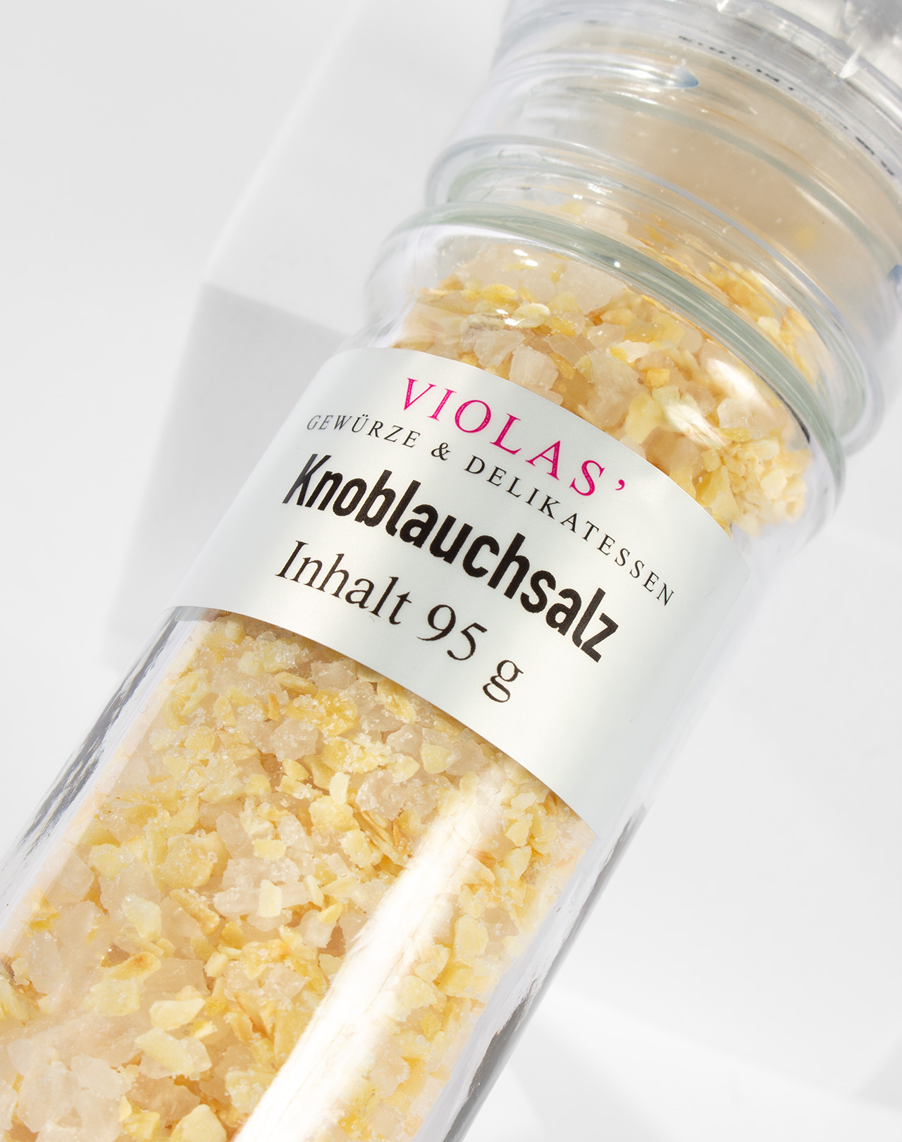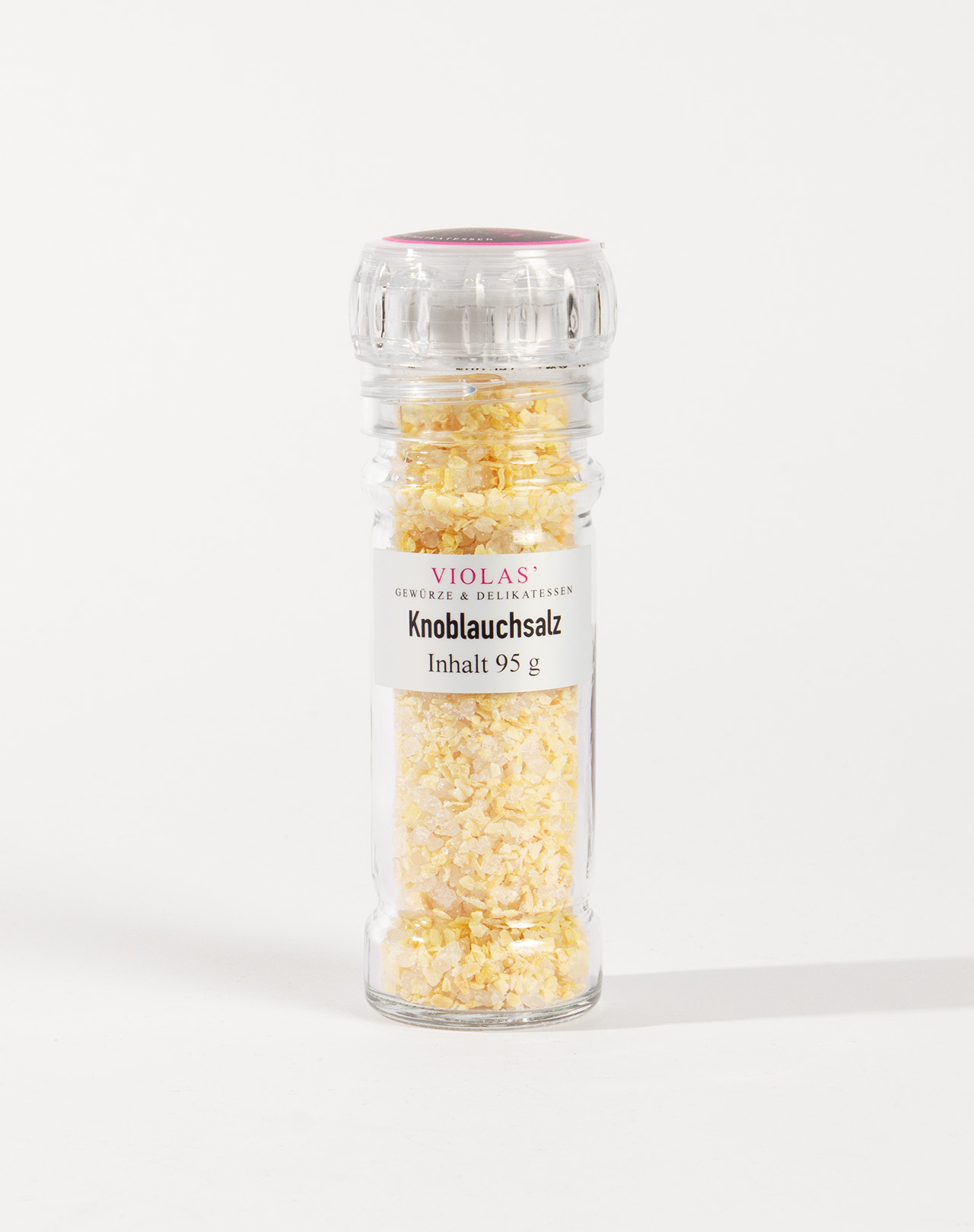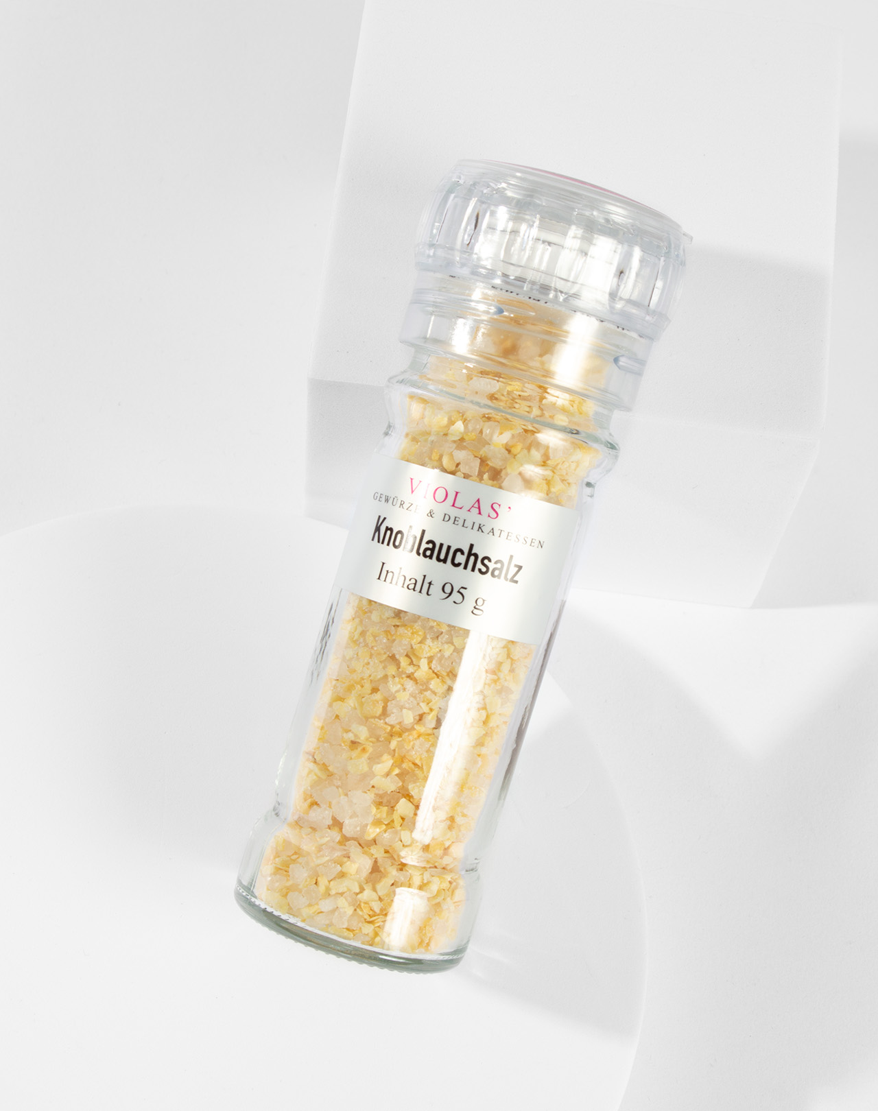 Oft sind die einfachen Dinge die besten. So ist es auch mit unserem Knoblauchsalz: Reines Meersalz und herzhafter Knoblauch verbinden sich zu einem vielseitig einsetzbaren Helferlein in der Küche und am Tisch. Mit unserem Knoblauchsalz verfeinern Sie spielend Suppen, Saucen, Kurzgebratenes, Kartoffeln und Gemüse und geben Kräuterbutter, Salatdressings und Grillgut den letzten Schliff.
