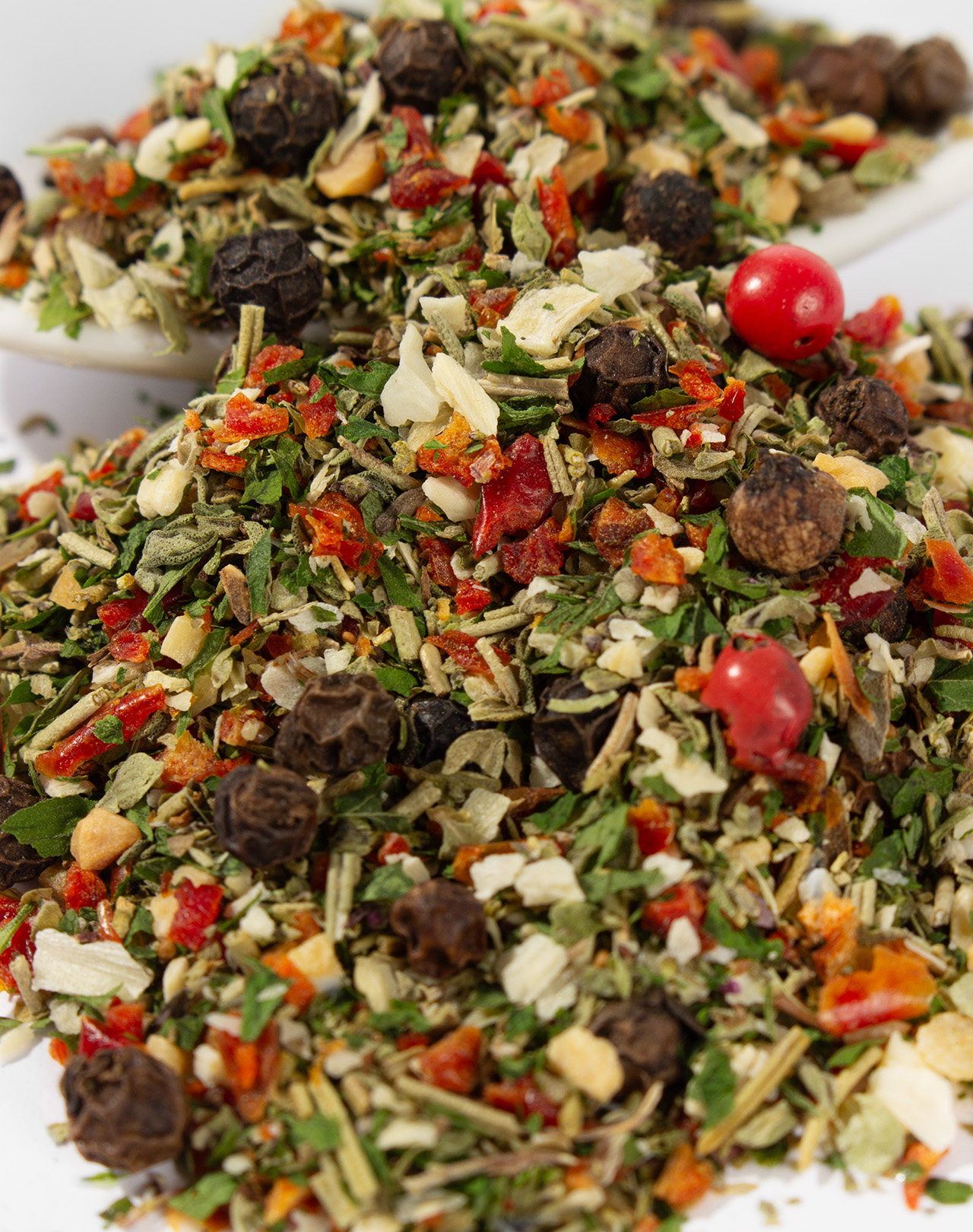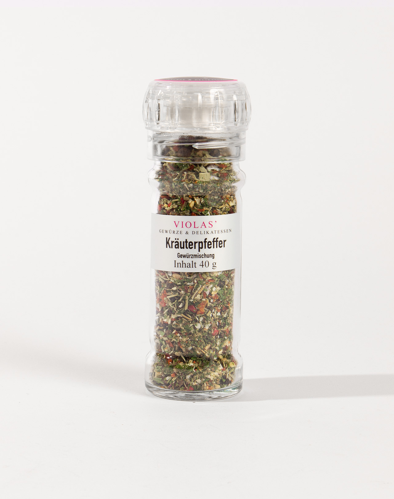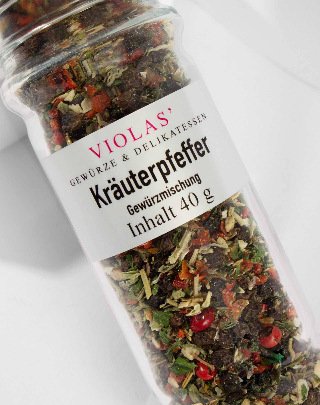 Eine der aromatischsten Gewürzmischungen auf Pfefferbasis in unserem VIOLAS’ Sortiment: Würzen Sie damit kalte und warme Gerichte, Fleisch und Gemüse oder verwenden Sie sie für Kräutersaucen und -butter oder geschmackvolle Marinaden mit einer pfeffrigen Note.