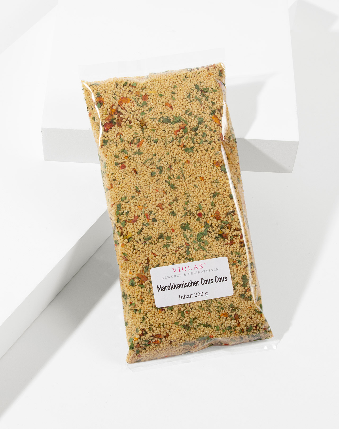 Couscous hat seinen Ursprung in Nordafrika und ist heute ein wesentlicher Bestandteil der schmackhaften Küche Marokkos. Unser Couscous ist mit seinen Gewürzen eine ideale Beilage zu Rind, Lamm oder Geflügel. Besonders authentisch ist eine Zubereitung als Eintopfgericht im traditionellen Schmortopf, der Tajine.