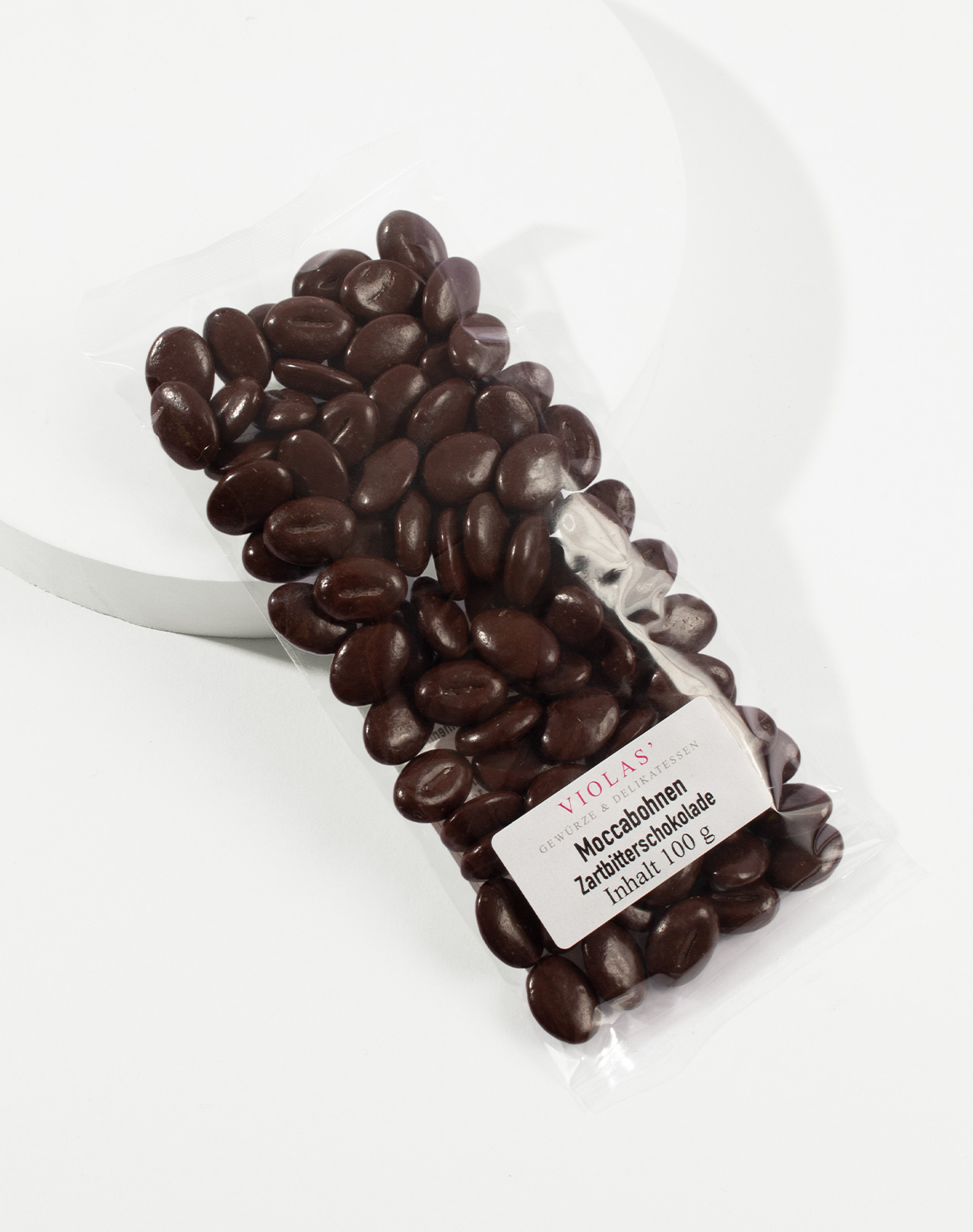 Klein und kräftig. Wer starken Kaffee liebt, wird Rotstern Mokkabohnen Zartbitter lieben. Die mundgerechten Zartbitter-Schokoladen sehen täuschend echt wie geröstete Kaffeebohnen aus und vereinen intensiven Mokka-Geschmack mit fein-herber Süße.
