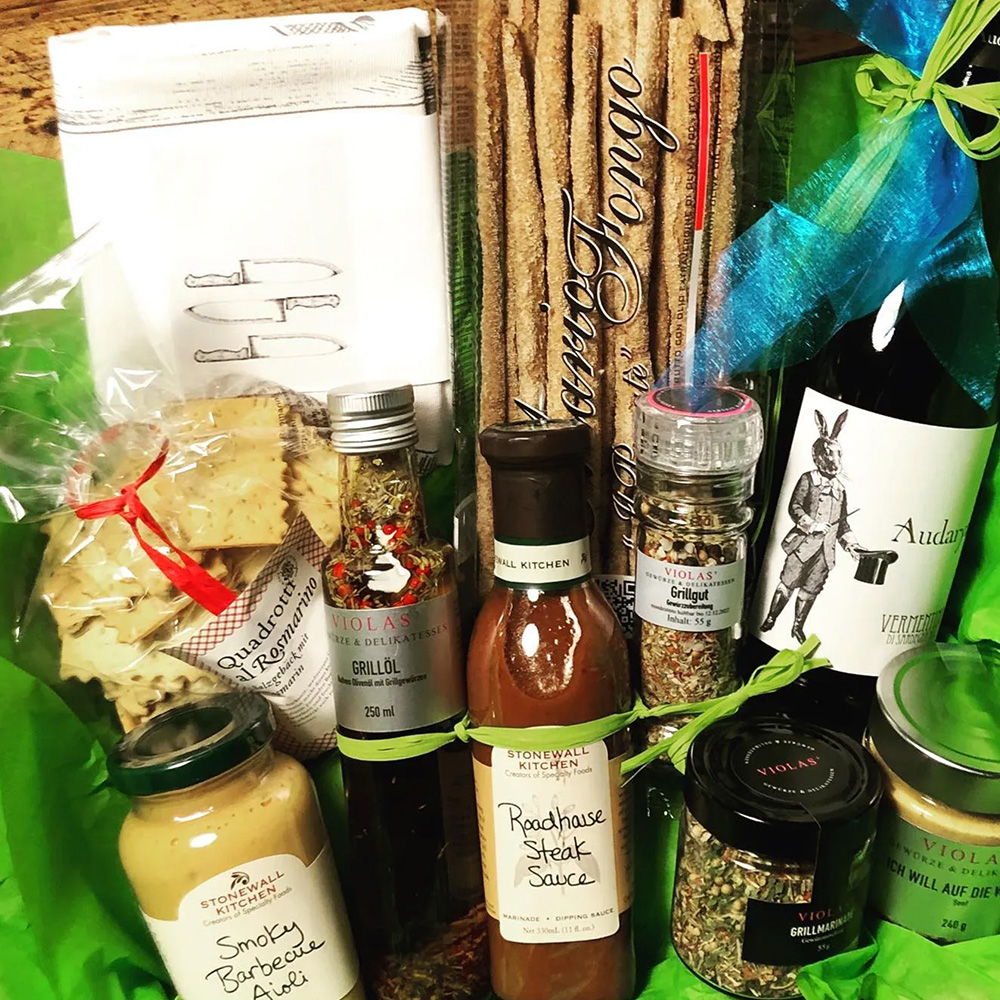 Unser VIOLAS’ Feinkostgeschäft finden Sie in 1. Untergeschoss des AEZ. Gewürze, Kräuter, Öle, Essige und viele Köstlichkeiten sind auch gut geeignet, anderen eine Freude zu machen. Von kleinen Aufmerksamkeiten bis hin zu individuellen Präsentkörben verpacken wir mit viel Liebe zum Detail Geschenke, die wir auf Wunsch auch liefern oder versenden.