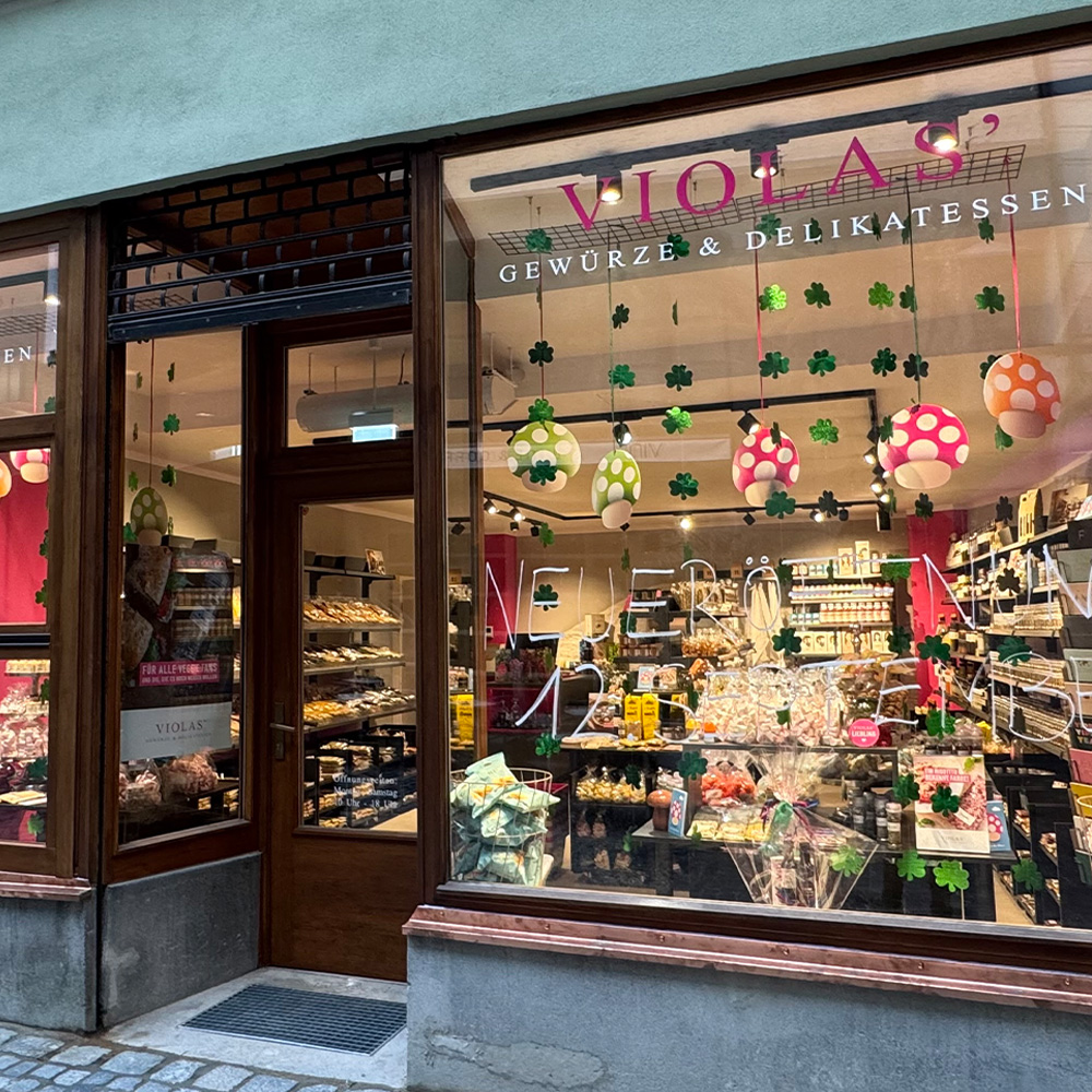 Mitten in der Altstadt, im denkmalgeschützten Wiedamann-Haus in der Brückstraße 4 haben Nancy und Maximilian Betschart ihren VIOLAS’ Store eröffnet. Die Brückstraße ist mit Cafés und Boutiquen der ideale Ort, um Genusskultur erlebbar zu machen. Für das VIOLAS’ Sortiment aus exotischen Gewürzen, Salzen, Ölen, Essigen und anderen Delikatessen aus aller Welt der perfekte Standort.