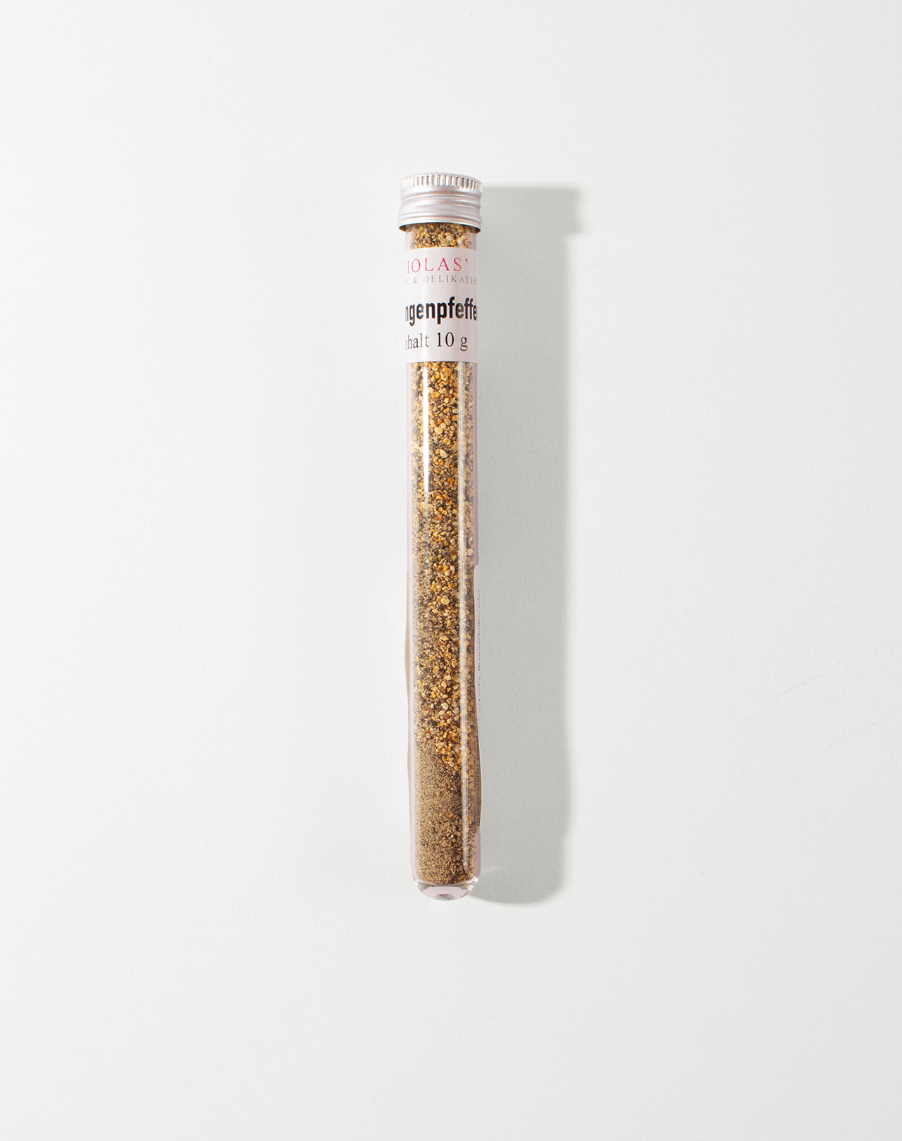 Unser Orangenpfeffer vereint die intensive Würze von schwarzem Pfeffer mit der fruchtigen Frische sonnengereifter Orangen. Diese harmonische Kombination verleiht der Mischung eine feine Zitrusnote und macht sie milder als klassischen Zitronenpfeffer. Perfekt geeignet zum Verfeinern von Lachs, aromatischer Orangenbutter, fruchtigen Saucen oder gegrilltem Huhn, sorgt dieser edle Pfeffer für eine raffinierte Geschmacksnuance in Ihren Gerichten. Im praktischen Röhrchen bleibt das Aroma lange erhalten und ist jederzeit griffbereit für Ihre kulinarischen Kreationen.