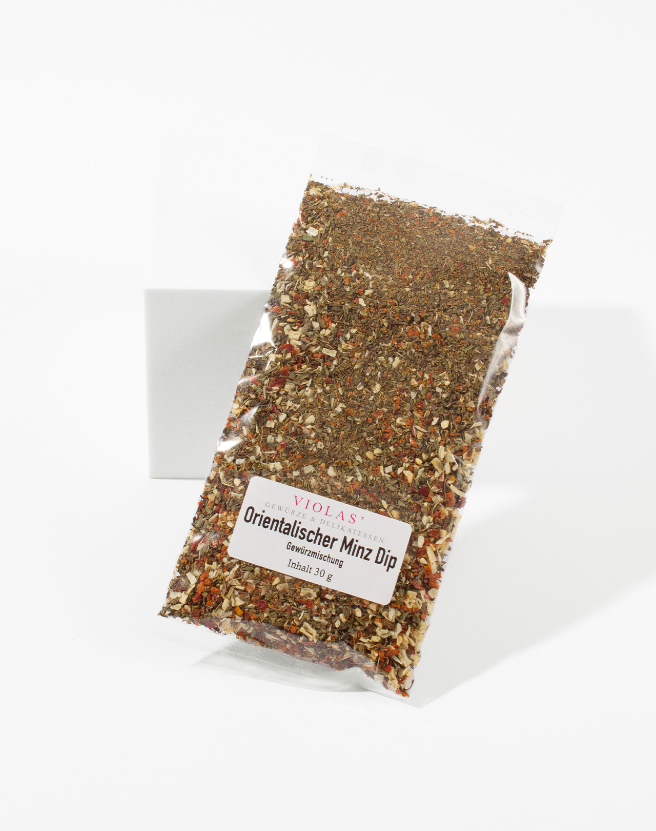 Diese Mischung für einen orientalischen Minz Dip wird einfach in Joghurt, Quark oder Sauerrahmen gerührt und schon kann gedippt werden. Z. B Kartoffelecken, Gemüsestreifen, Fladenbrot oder ganz traditionell Falafel.