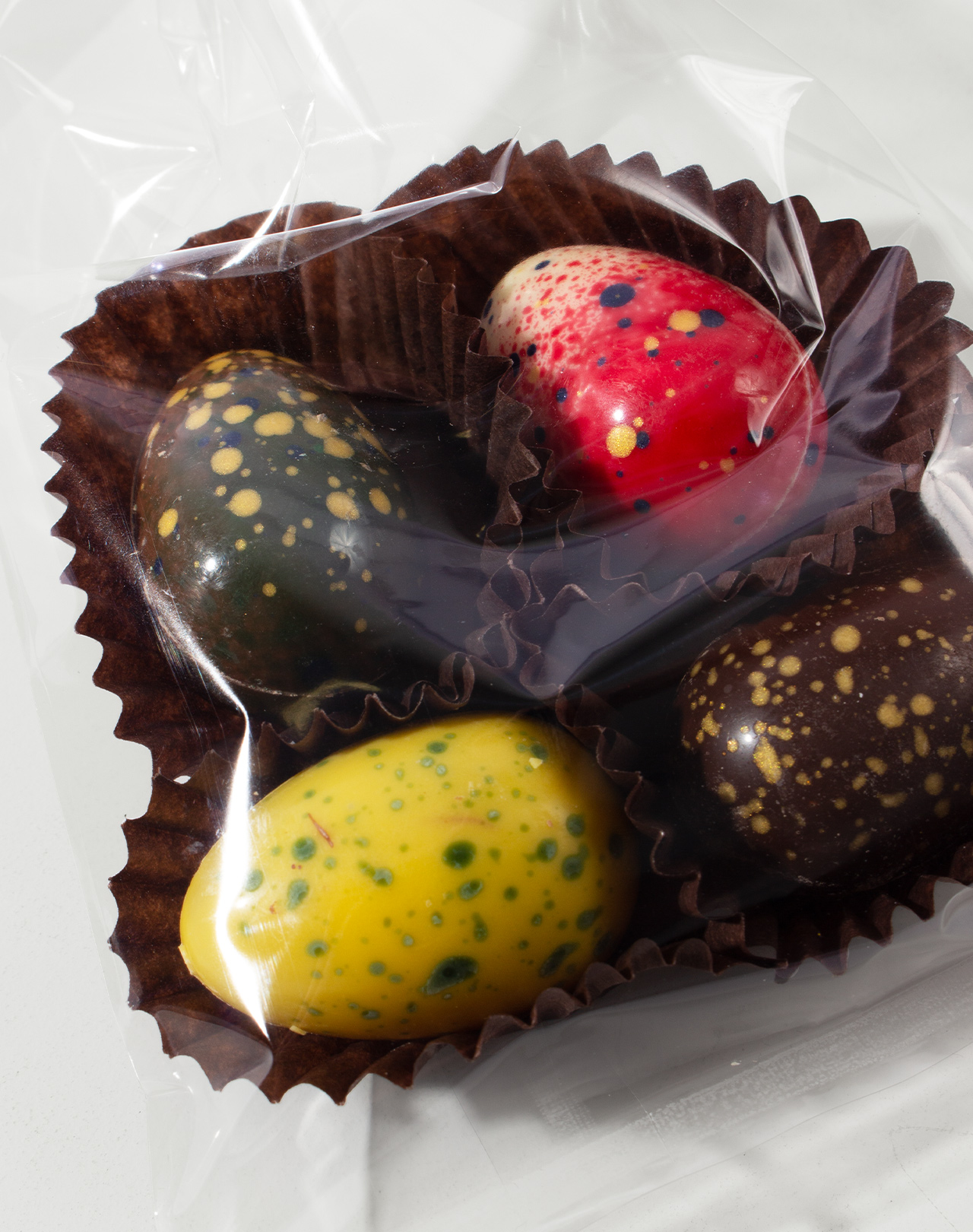 Kunstvolle Ostereier aus leckerer Schokolade. Ideal fürs Osternest und als süße Aufmerksamkeit.