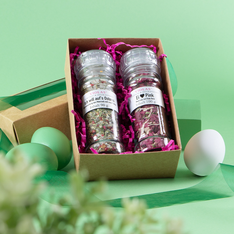 Passend zum Osterfest haben wir unsere Gewürzmühlen in festliche Stimmung gebracht! Entdecken Sie kreative Mischungen wie »Ich will auf's Osterei« oder »Ei love Pink« – perfekt für den Frühstückstisch oder als originelles Geschenk. Zu einem Unikat wird so eine Mühle mit einer persönlichen Grußbotschaft. Unser kostenloser Service: Wir erstellen individuelle Etikette für jede Mühle!